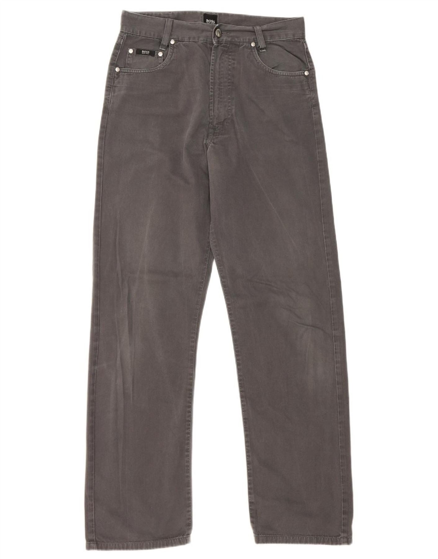 HUGO BOSS Mens Arkansas Straight Casual Trousers W30 L32 Grey Cotton