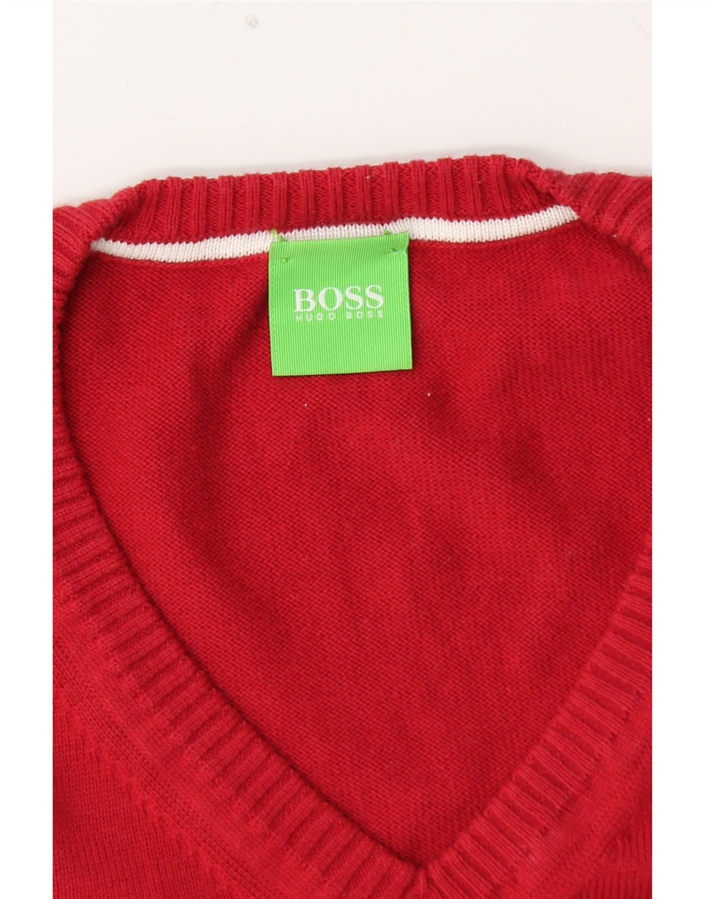 HUGO BOSS Pull Graphique à Col en V Homme Large Rouge Colourblock
