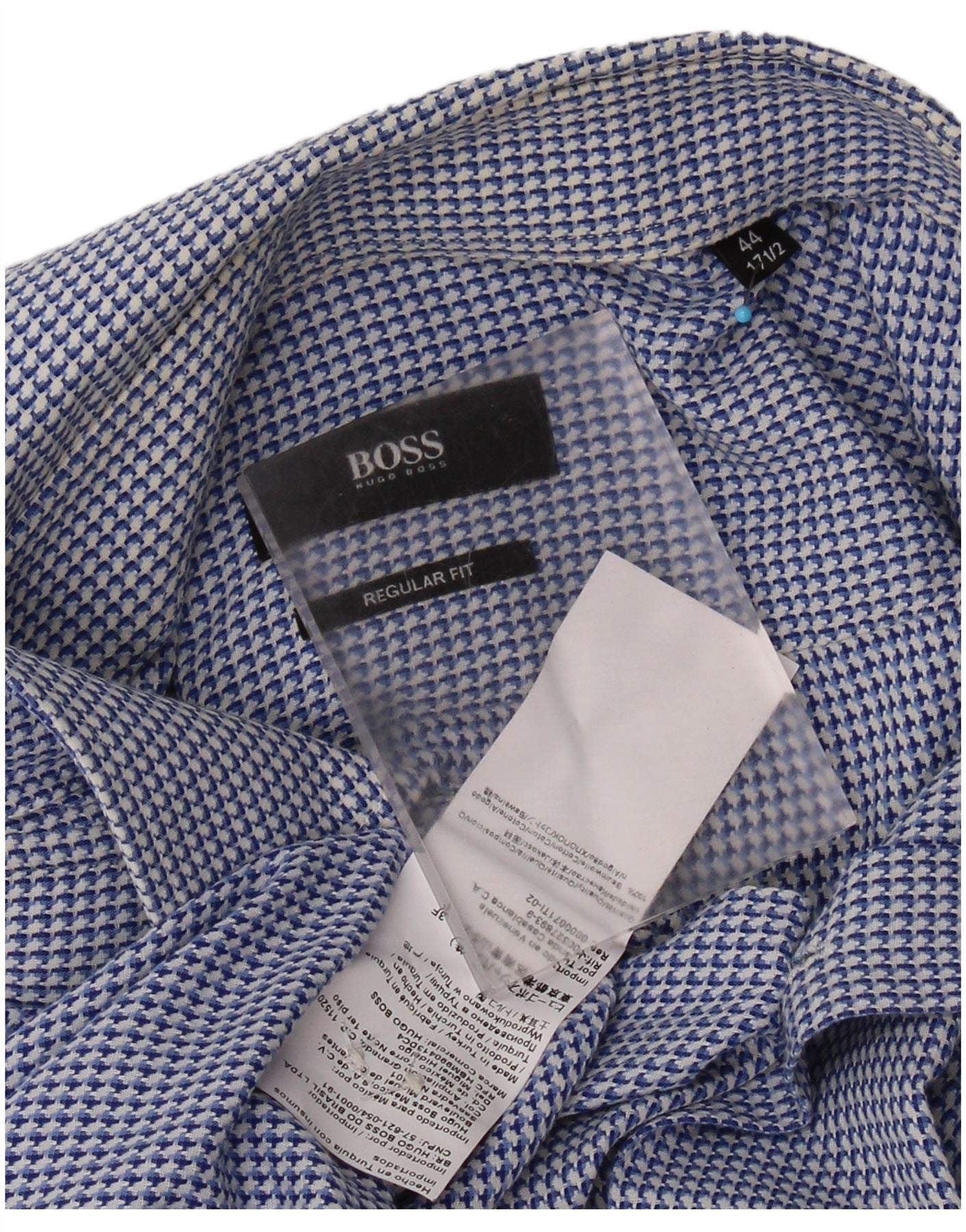 HUGO BOSS Chemise Regular Fit Homme Taille 44 17 1/2 XL Bleu Pied-de-Poule Coton