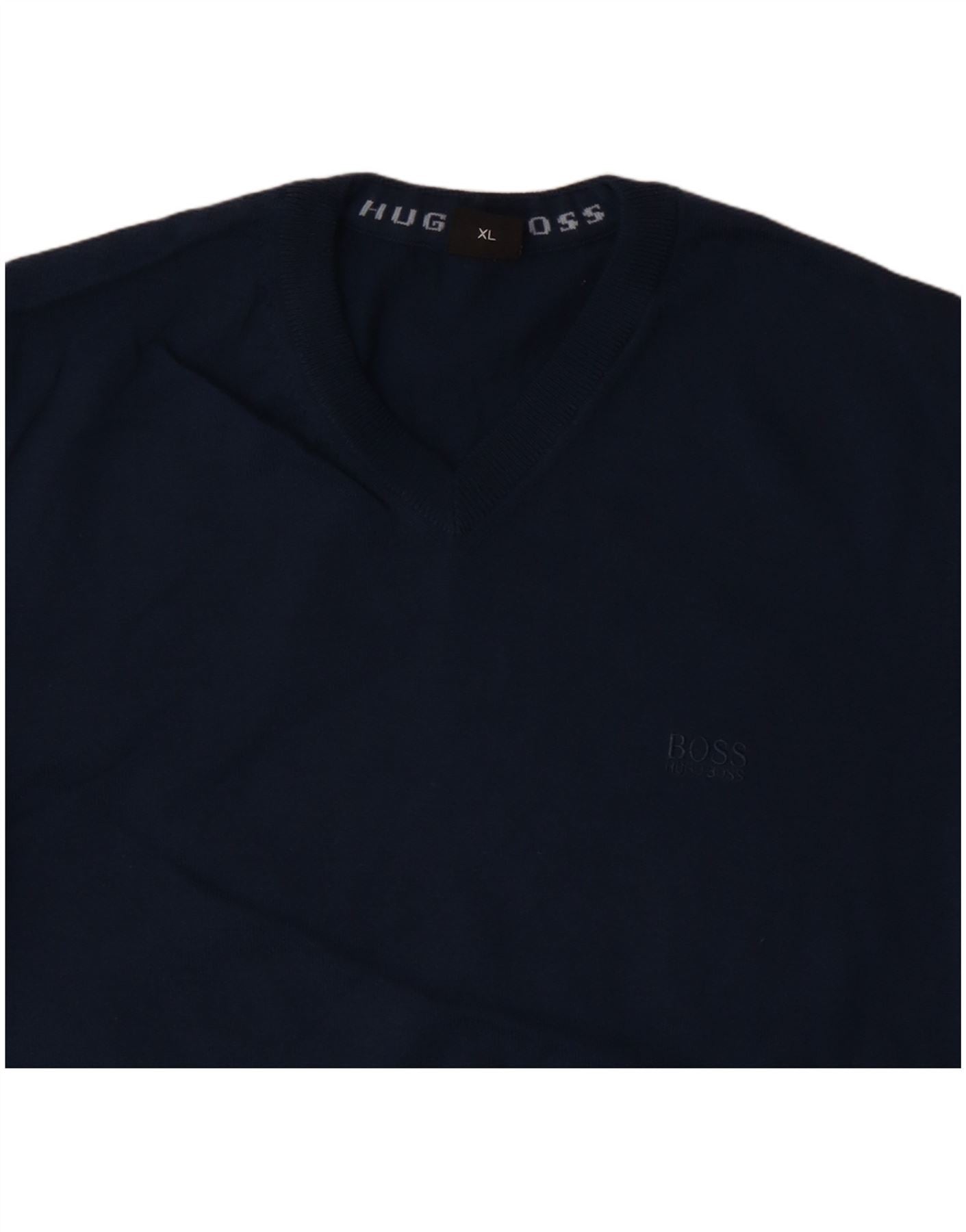 HUGO BOSS Homme Pull Col V XL Bleu Marine Laine