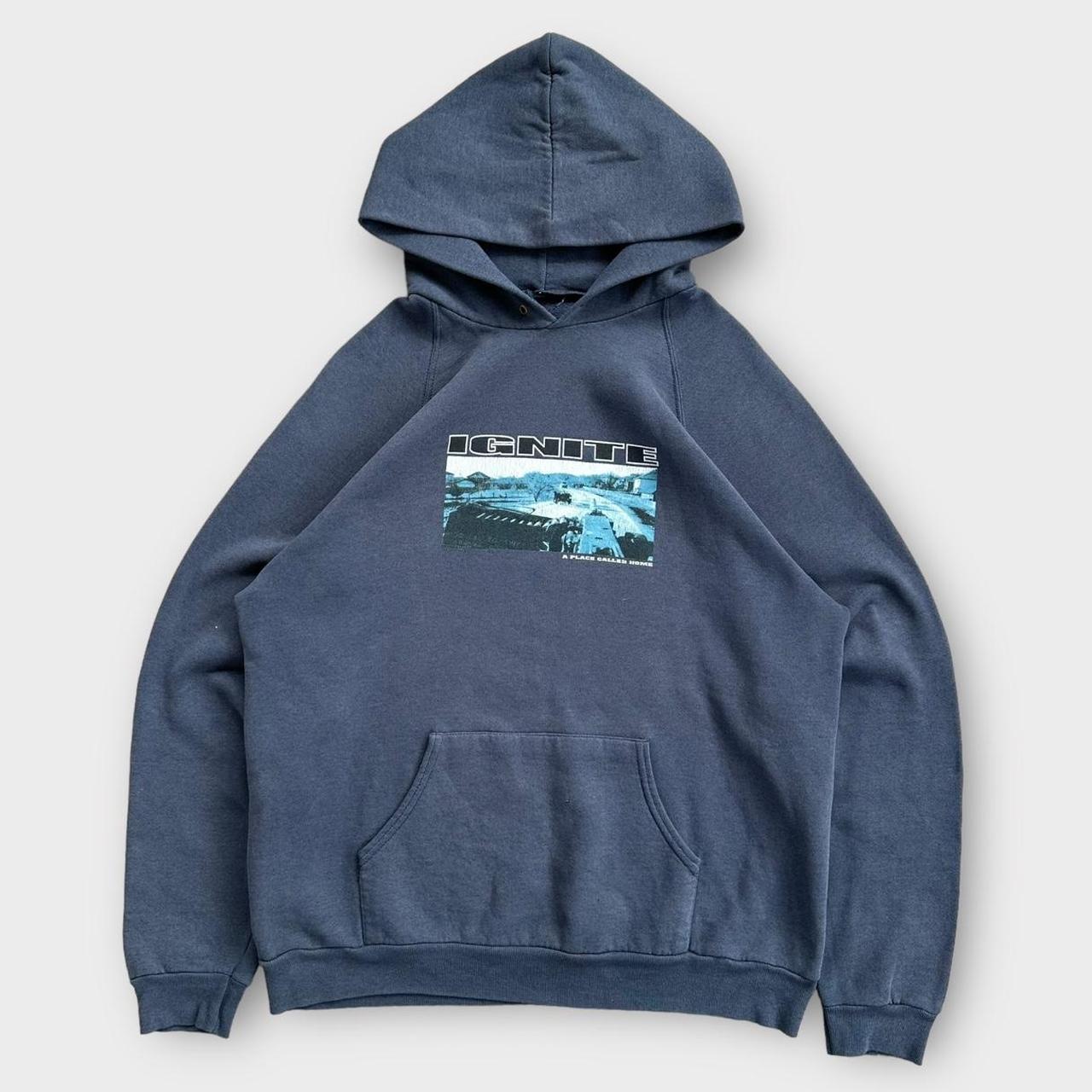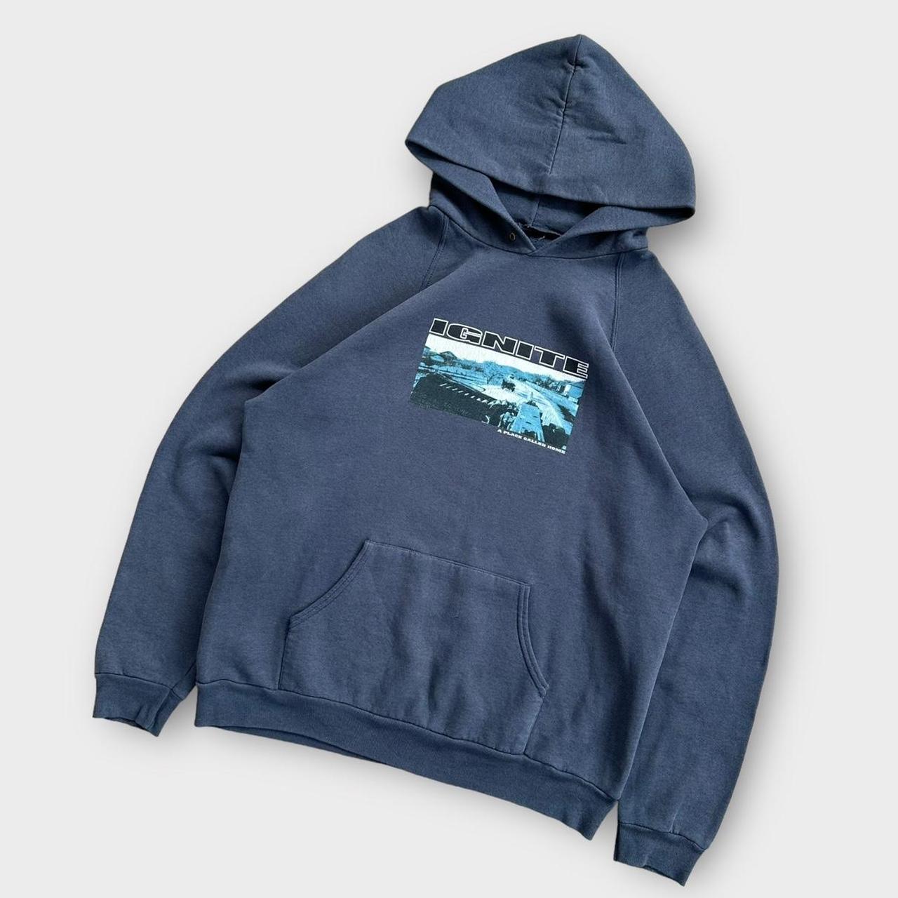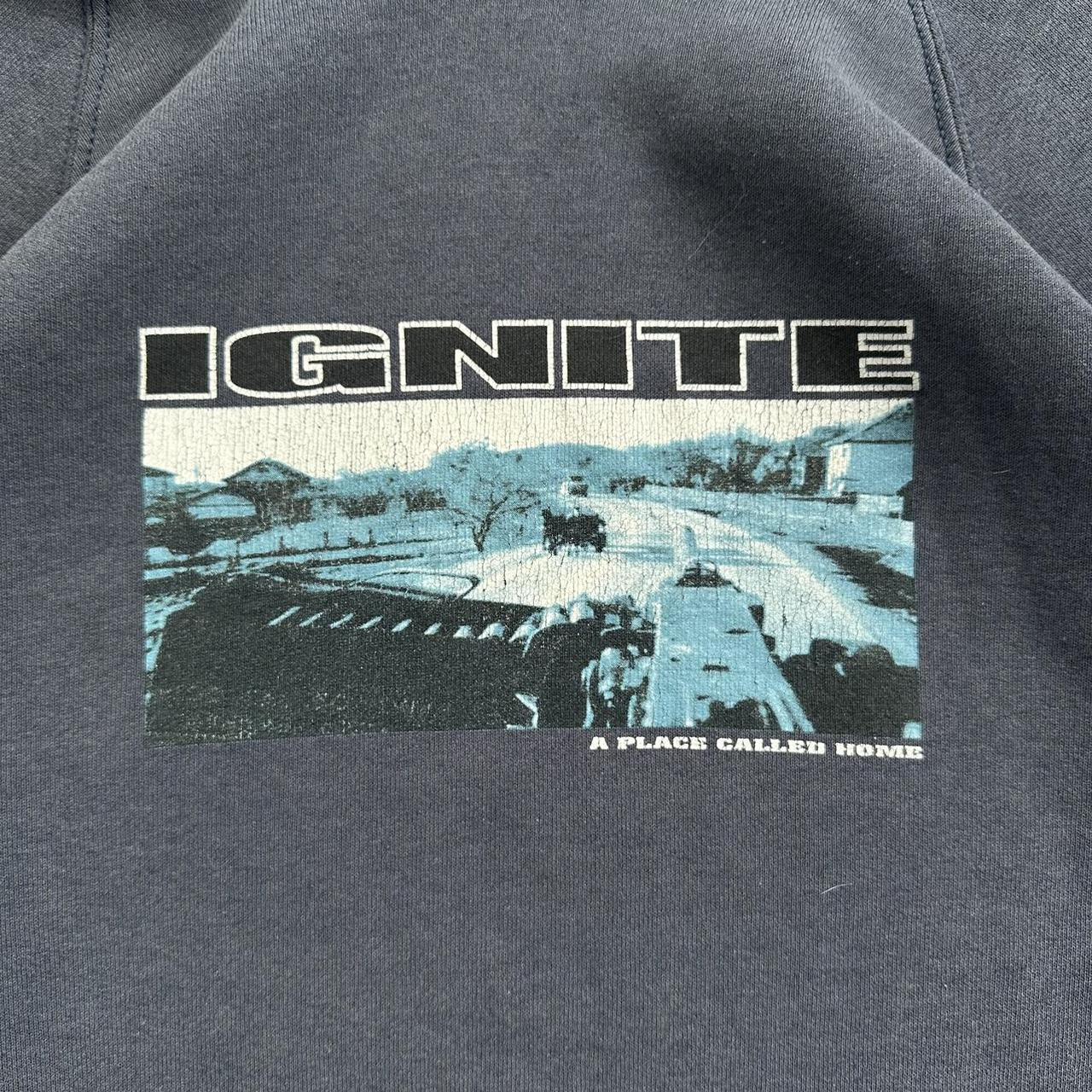 Depuis l'année 2000, sweat à capuche du groupe A Place Called Home Ignite de couleur bleu délavé/marine avec imprimé graphique sur le devant.