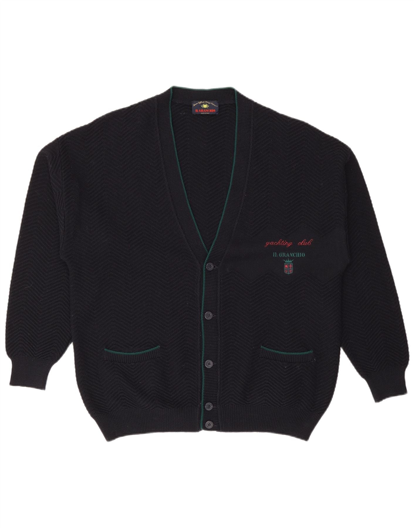 IL GRANCHIO Cardigan Homme Pull Large Bleu Marine Laine
