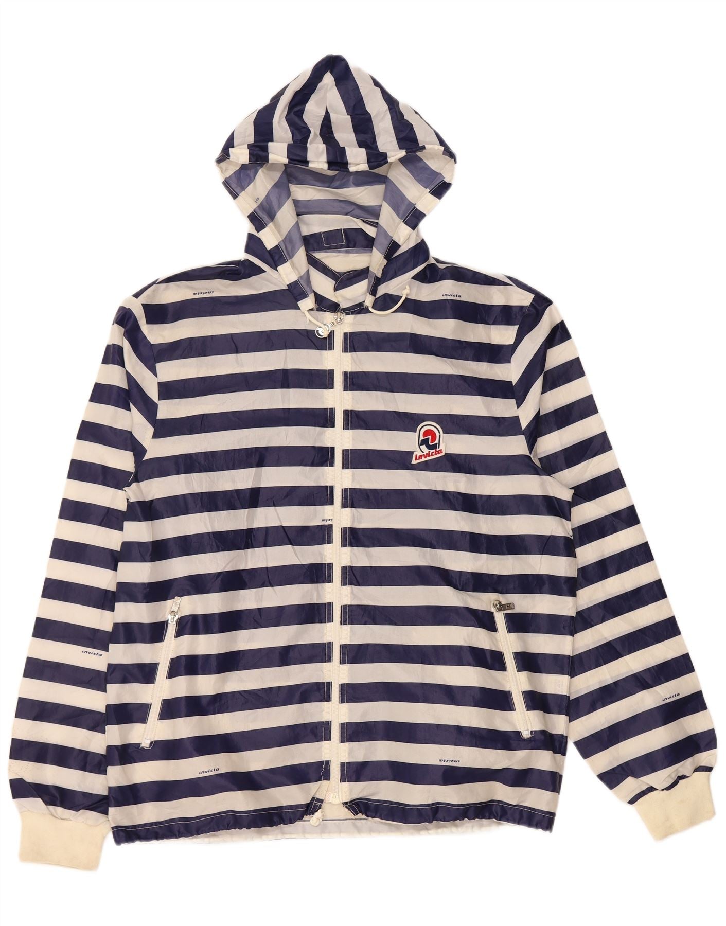 INVICTA Veste de pluie à capuche pour homme UK 40 Large Bleu Marine Rayé Polyester