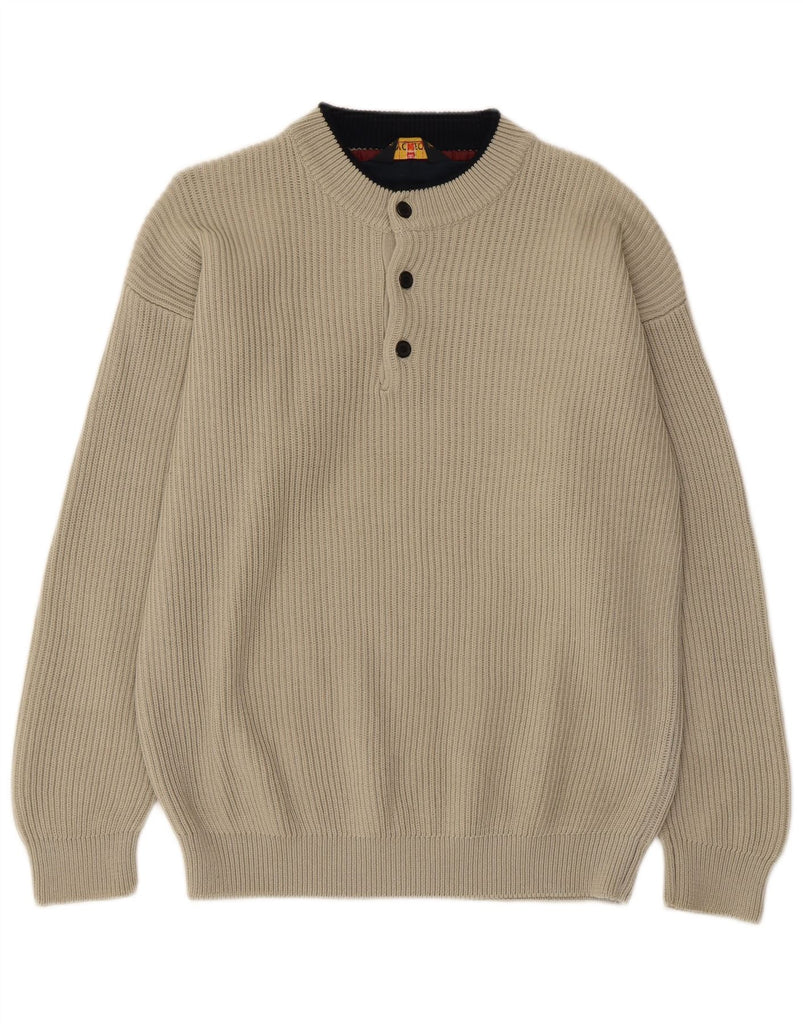 IVY OXFORD Pull à col boutonné pour homme en laine blanc cassé moyen