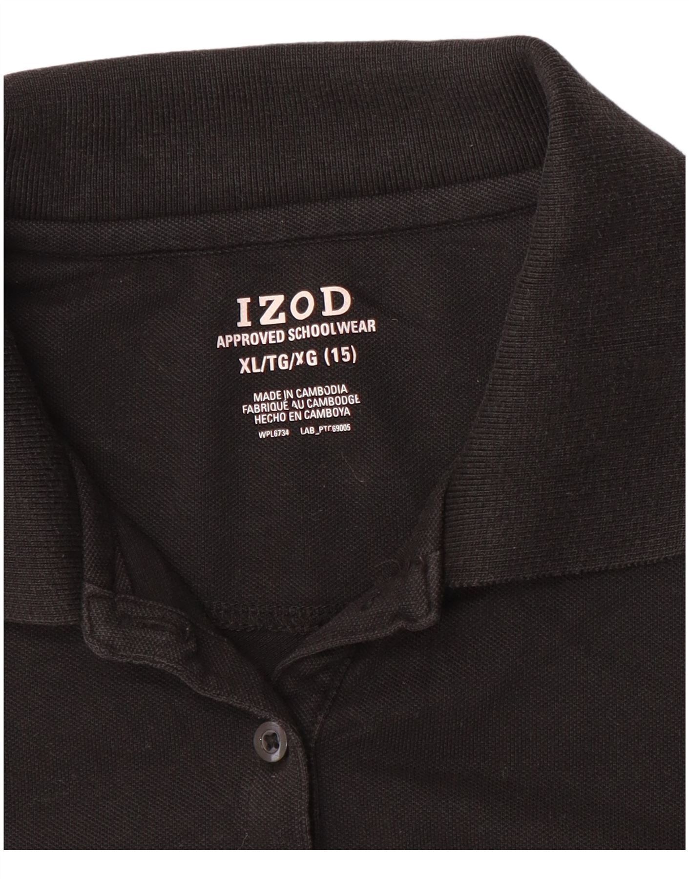 - Description de l'IA : Ce polo pour femme Izod est confectionné dans un tissu tricoté noir confortable et extensible. Il présente une encolure classique et des manches courtes. La patte de boutonnage ajoute une touche traditionnelle. Une coupe régulière assure confort et facilité de mouvement. Cette chemise polyvalente offre un design épuré et minimaliste à porter au quotidien.