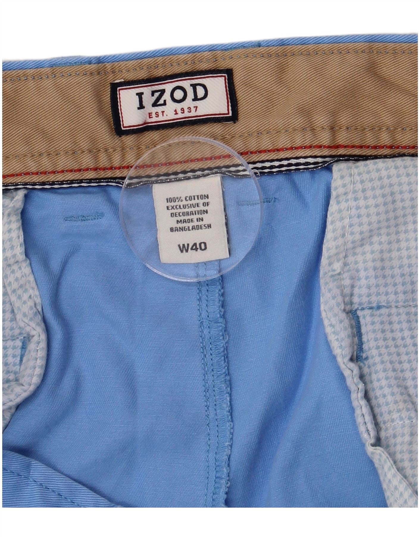 Izod Short Chino Homme W40 XL Bleu Coton
