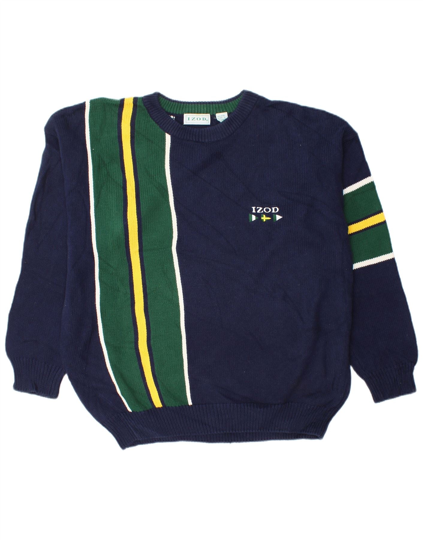 IZOD Pull à col rond pour homme en coton color block bleu marine Taille L