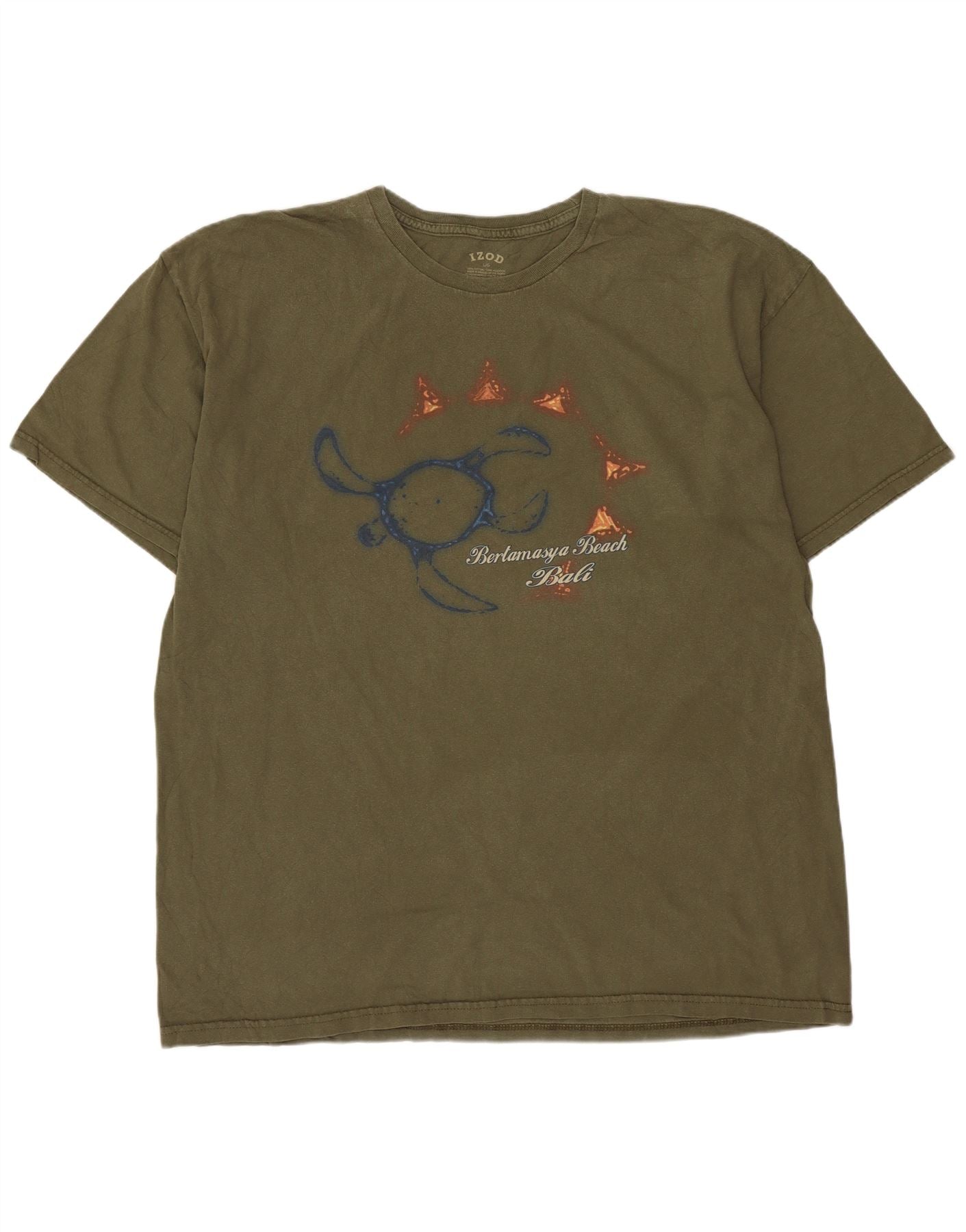 Izod T-Shirt Graphique Homme Haut Large Kaki Coton