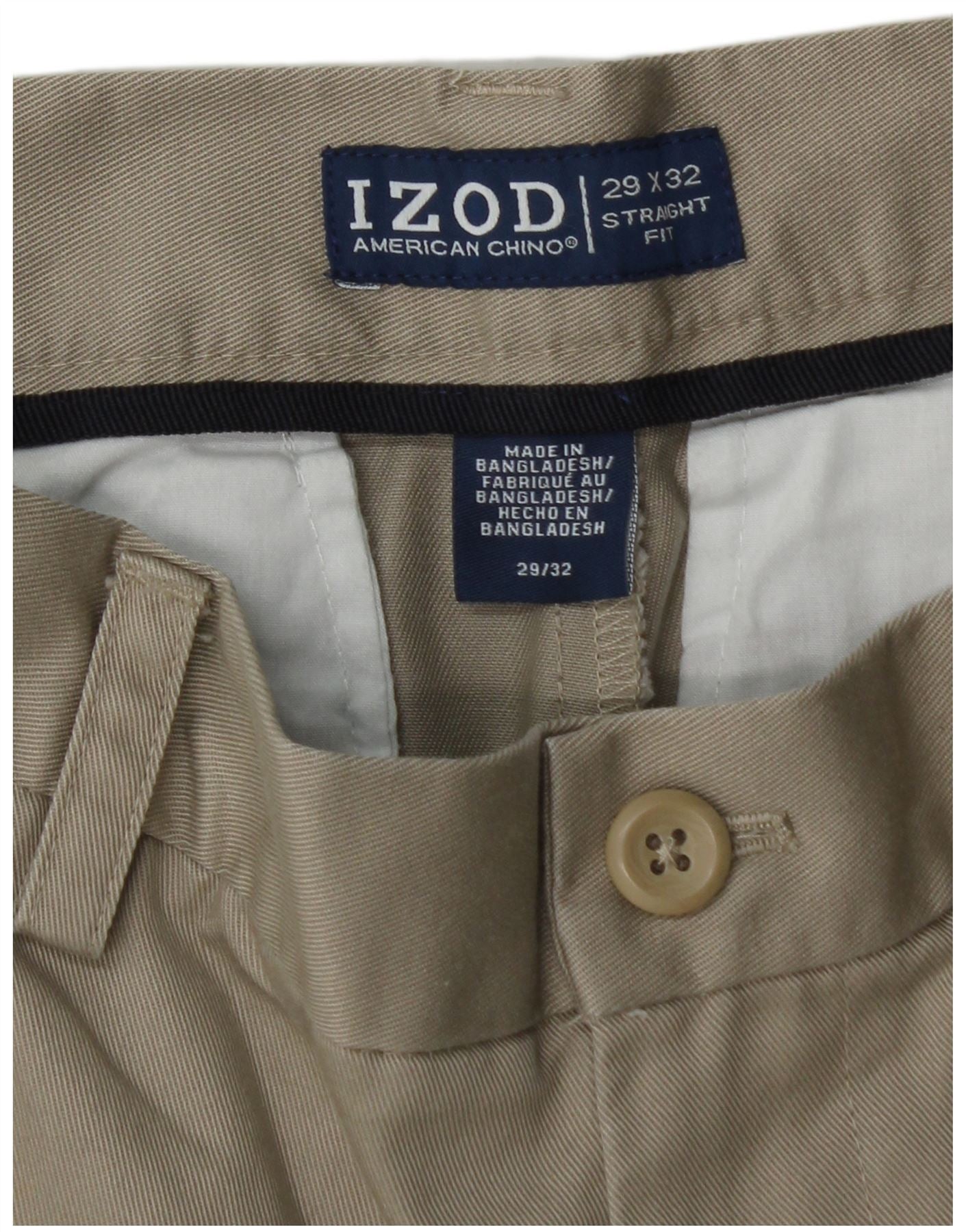 IZOD Pantalon Chino Droit Homme W29 L32 Coton Beige