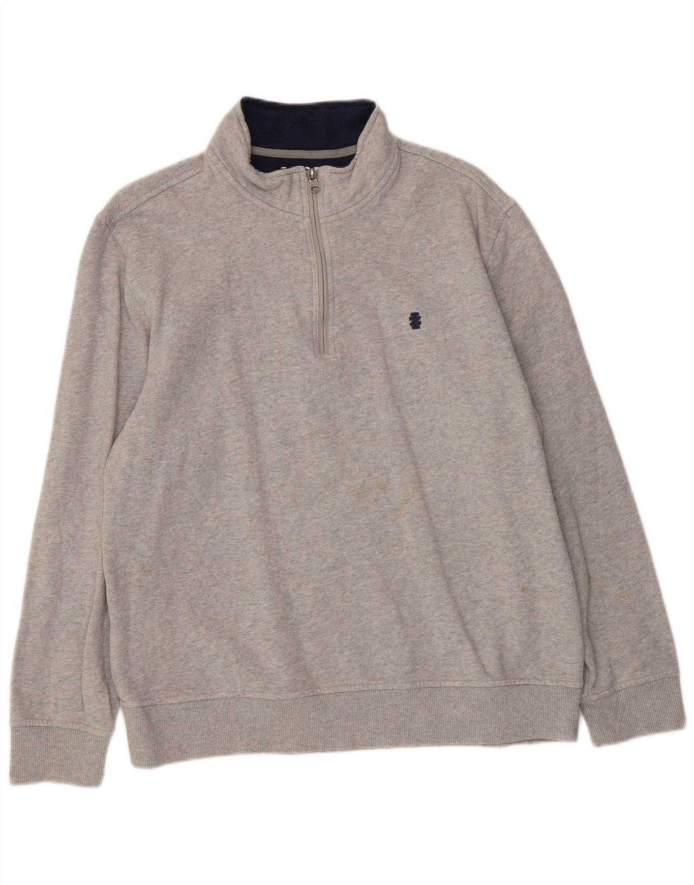 Izod Sweat-Shirt Col Zippé Homme Gris Moyen Coton