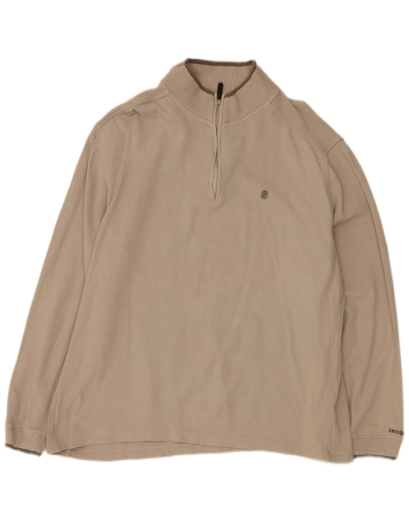 Izod Haut à col zippé et manches longues pour homme en coton beige