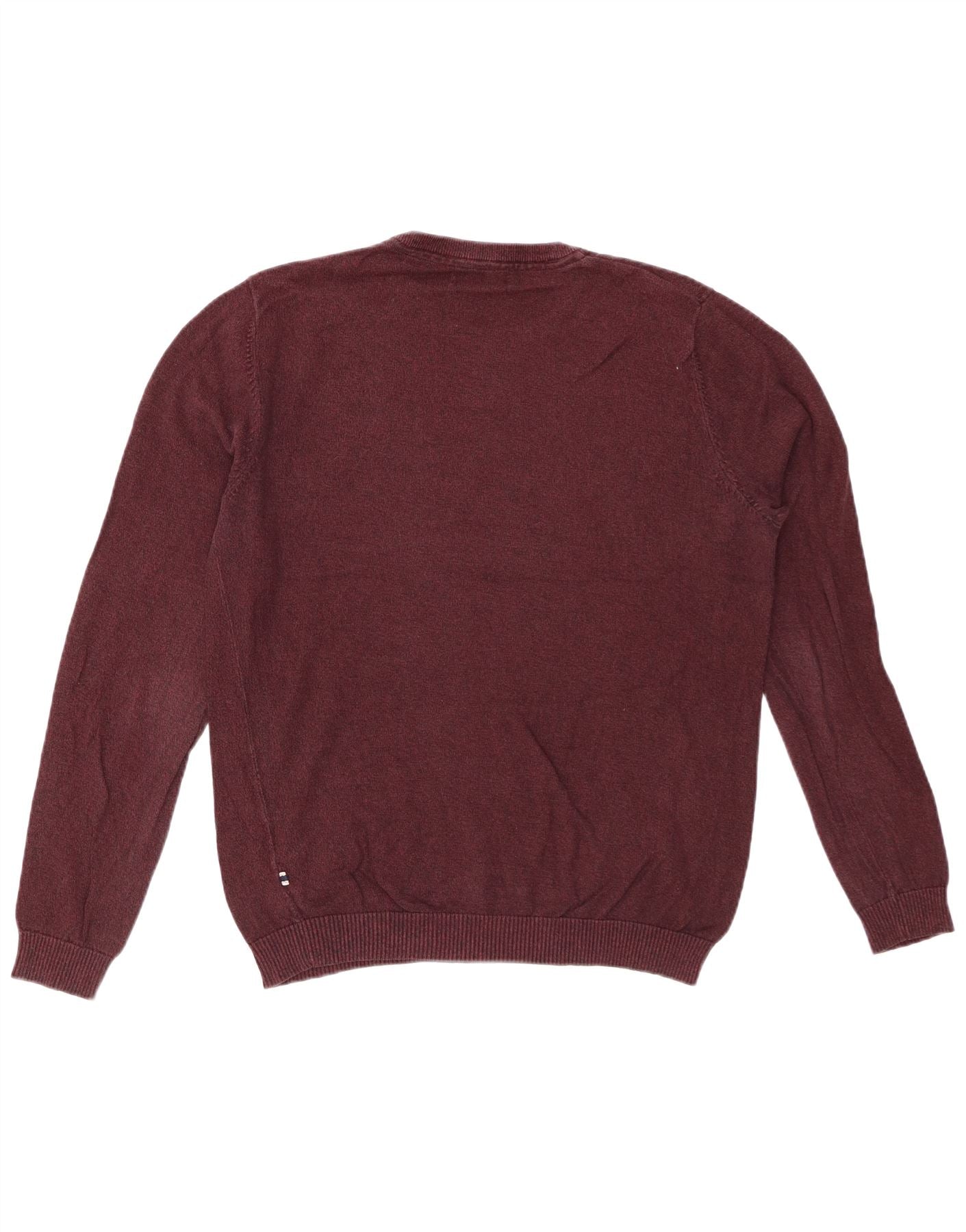JACK & JONES Mens Crew Neck Jumper Sweater Medium Burgundy Cotton