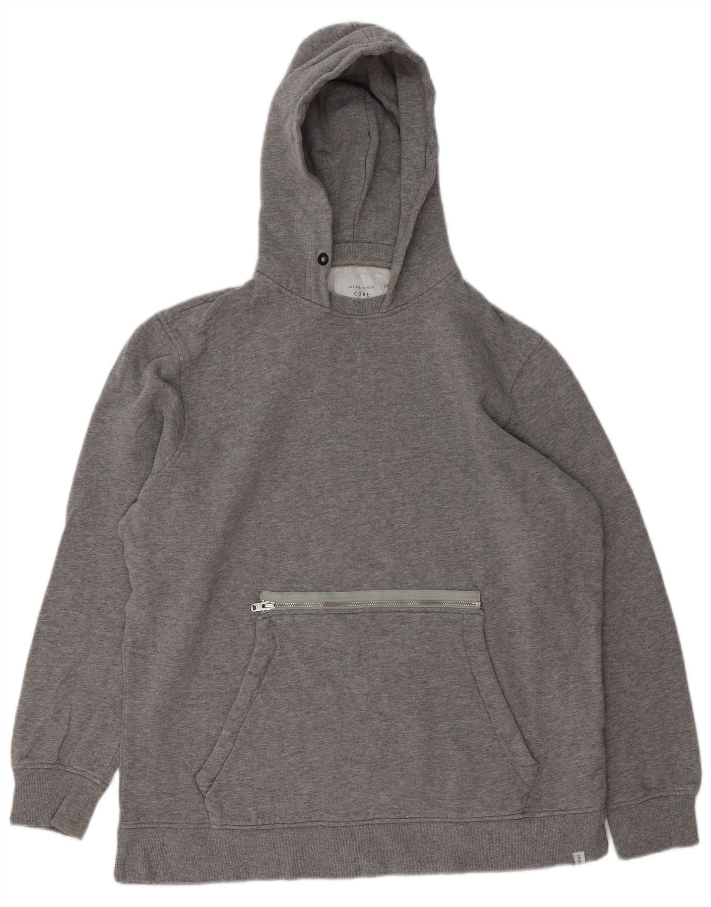 JACK & JONES Pull à capuche graphique homme grand gris coton