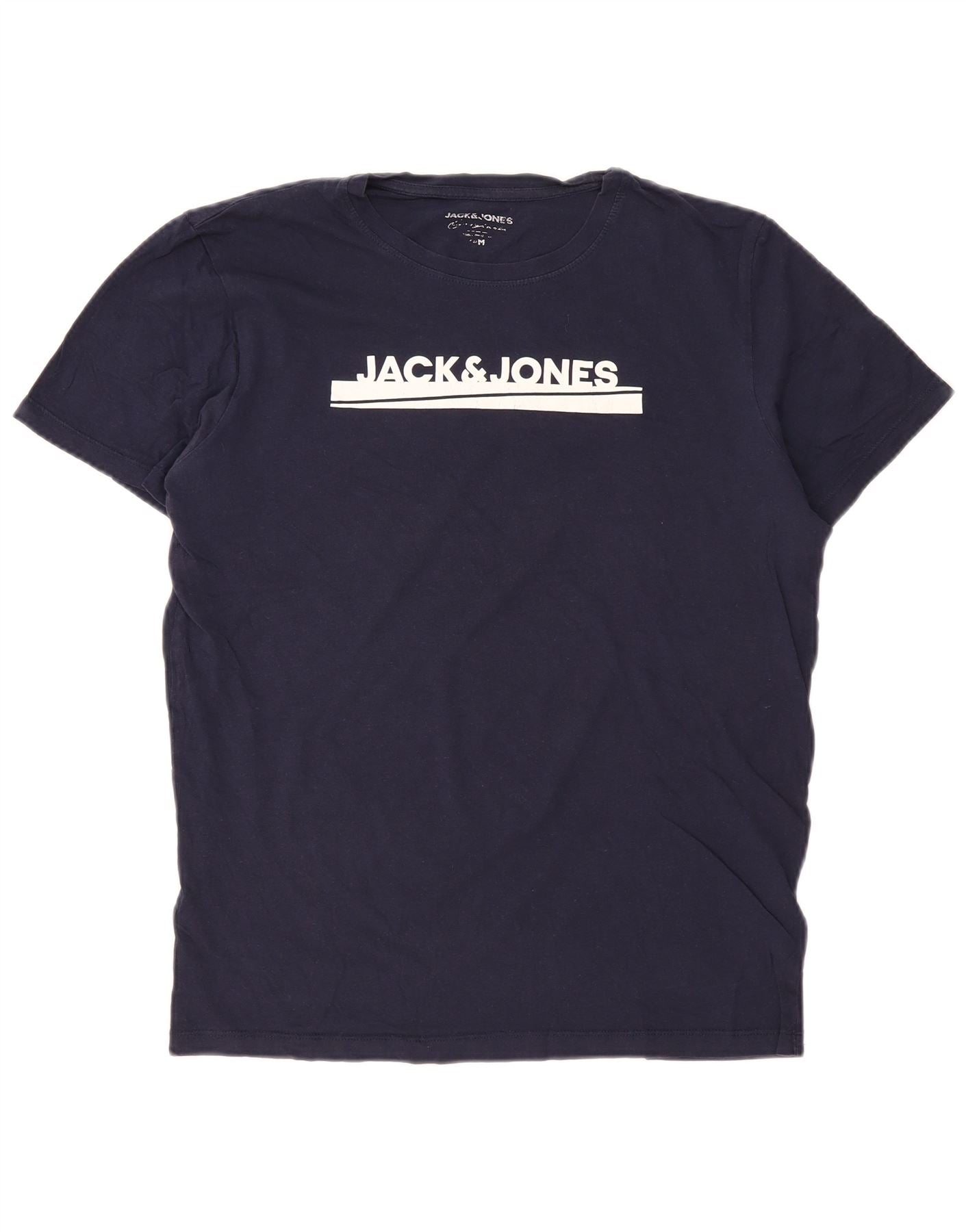 JACK & JONES T-Shirt Graphique Homme Bleu Marine Moyen Coton