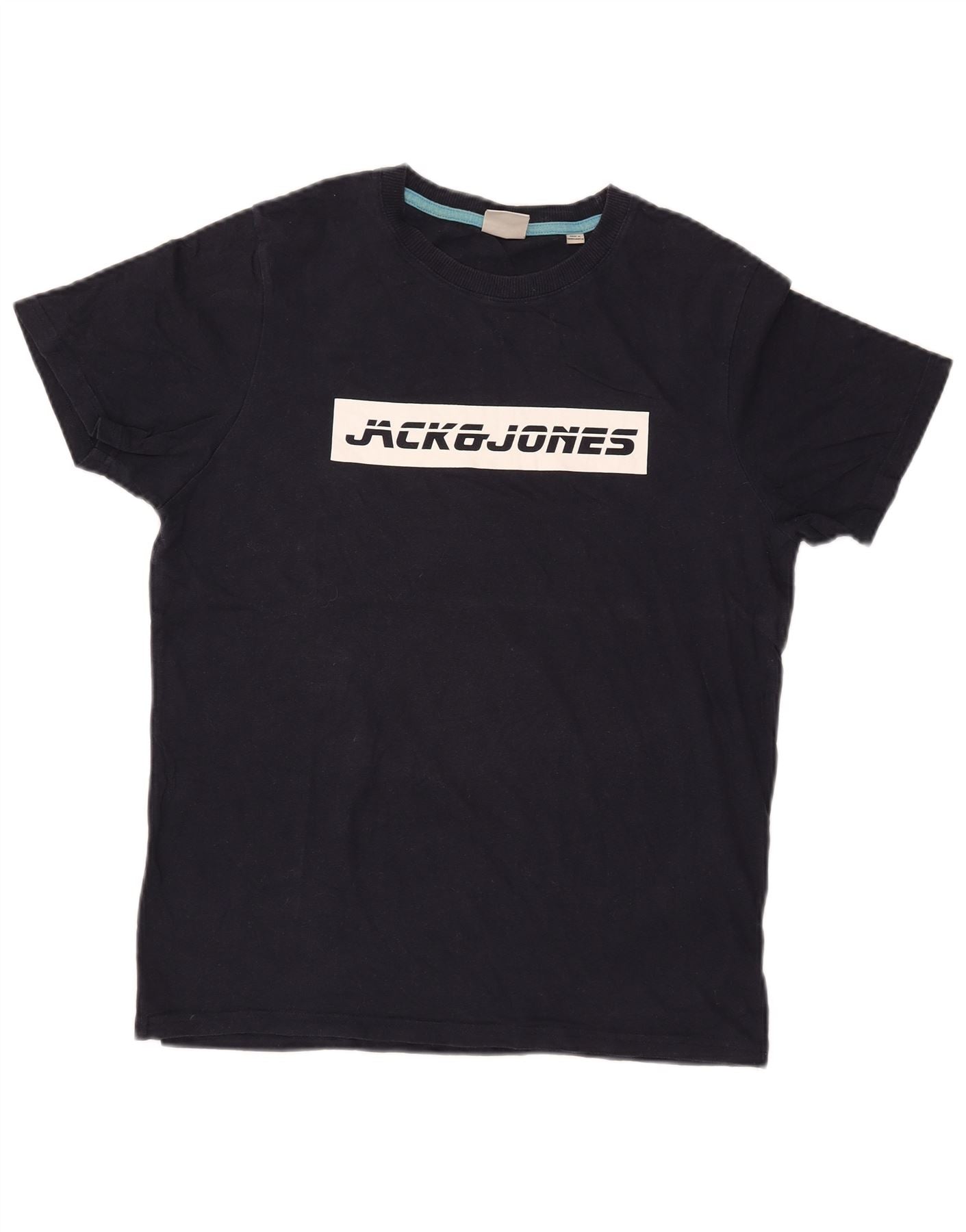JACK & JONES T-Shirt Graphique Homme Bleu Marine Moyen Coton