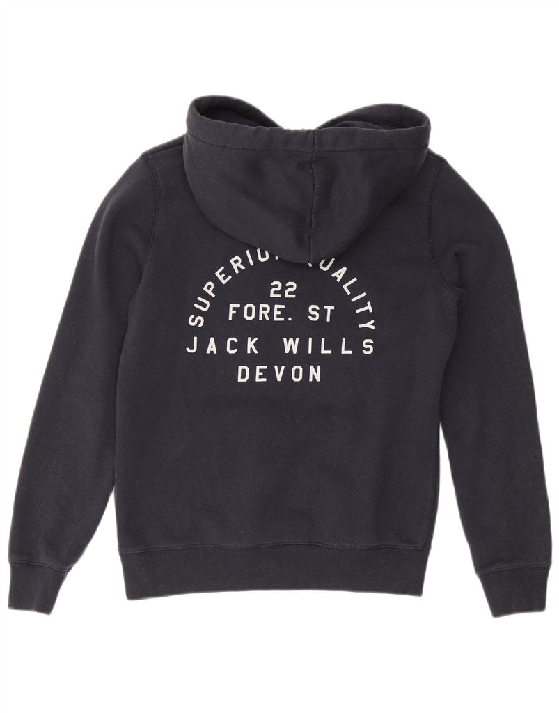 JACK WILLS Mens Graphic Hoodie Jumper UK 10 Small Navy Blue Cotton