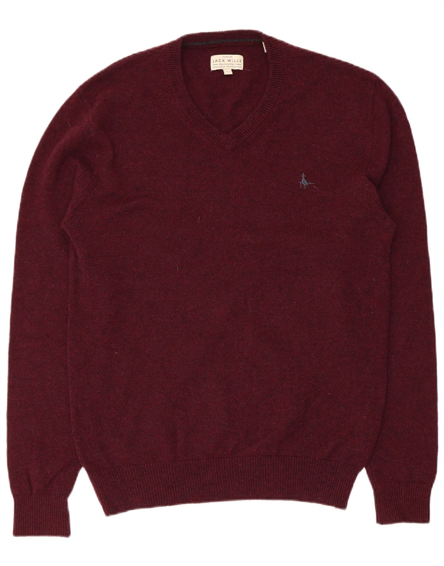 JACK WILLS Pull col en V pour homme en laine mérinos marron