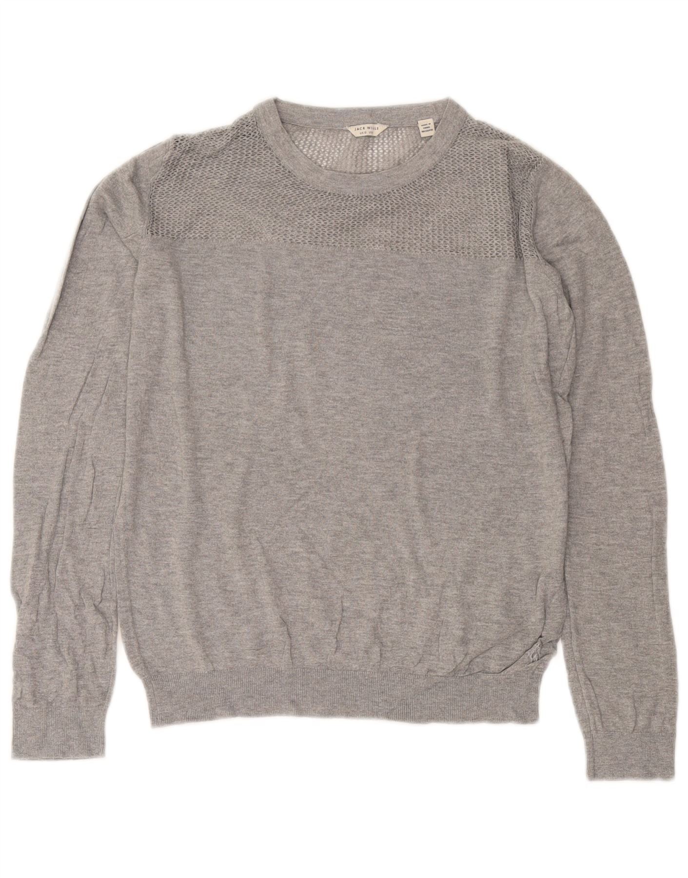 Jack Wills Pull à col rond pour femme UK 12 Gris moyen Coton