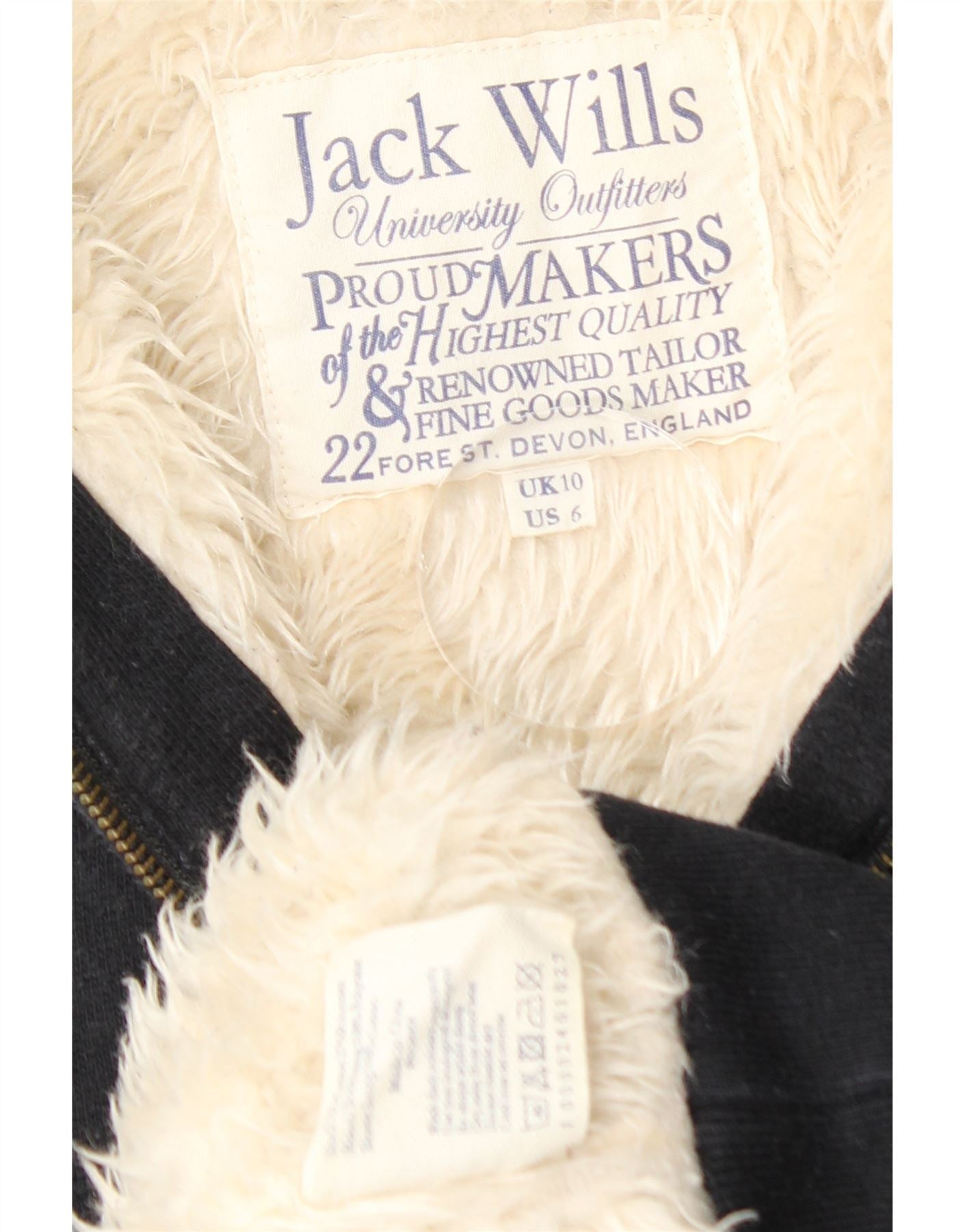 JACK WILLS Pull à capuche zippé graphique Sherpa pour femme UK 10 Small Noir