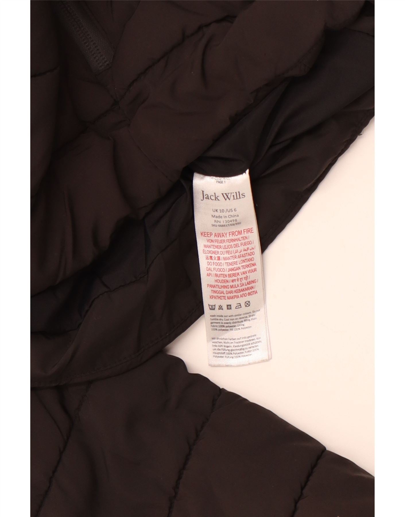 JACK WILLS Veste matelassée pour femme UK 10 Small Noir Polyester