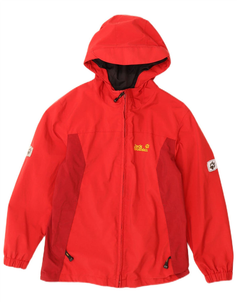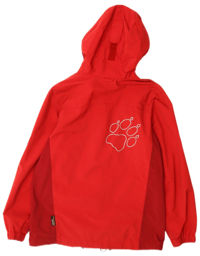 JACK WOLFSKIN Boys Graphic Hooded Rain Jacket 10-11 Years Red Colourblock