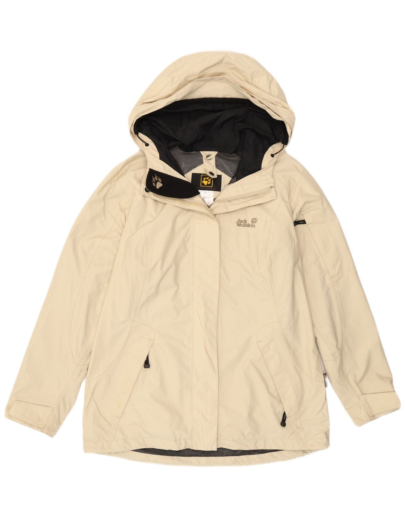 Jack Wolfskin Veste de pluie à capuche pour femme UK 16 Large Off White Polyamide