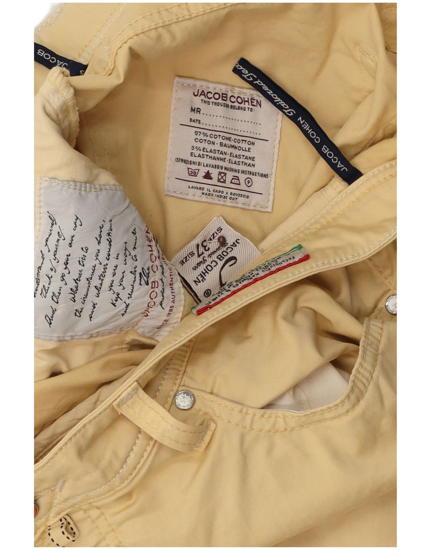 JACOB COHEN Mens Straight Casual Trousers W37 L32 Yellow Cotton
