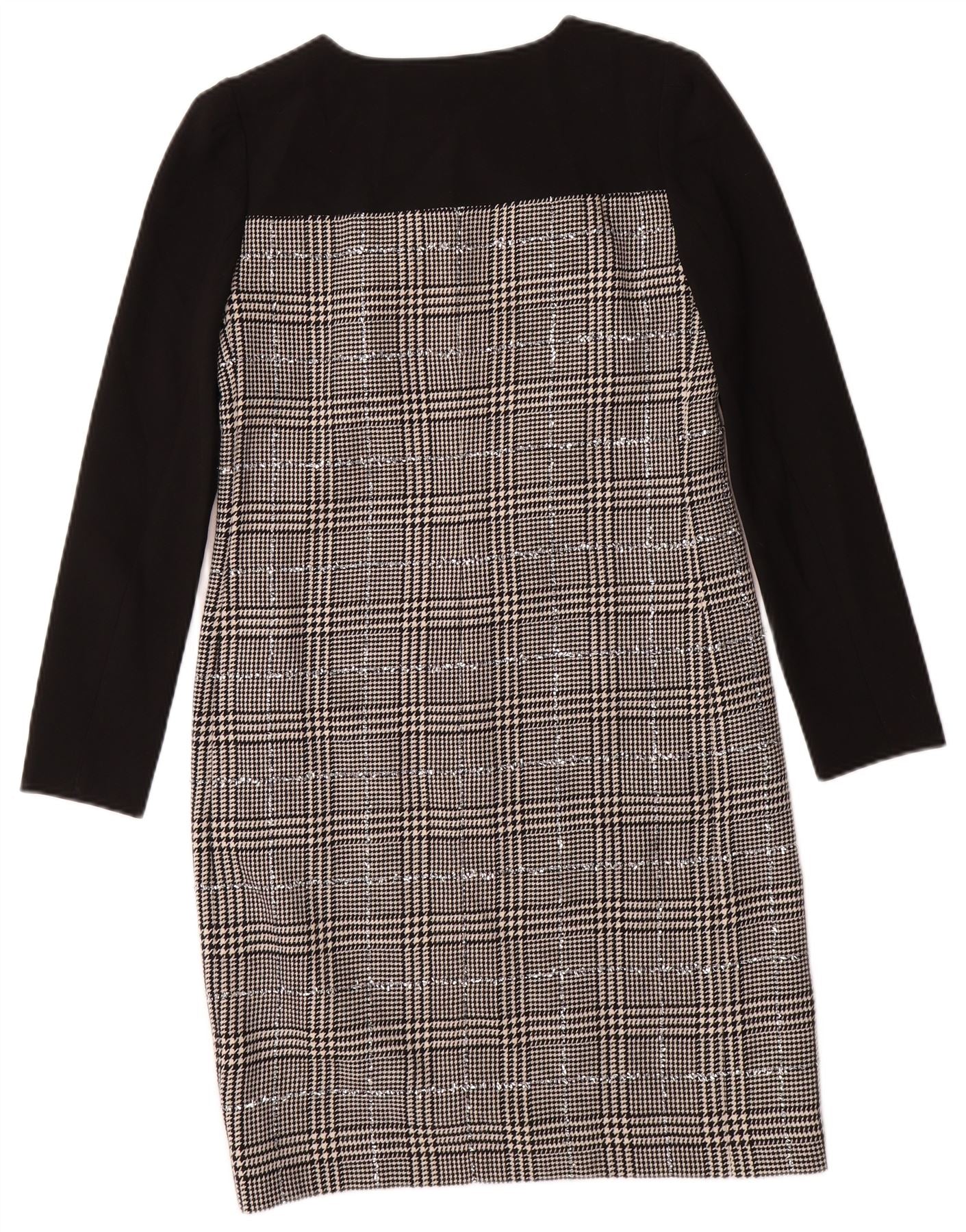 JAEGER Robe fourreau à manches longues pour femme UK 8 Petite laine pied-de-poule noire