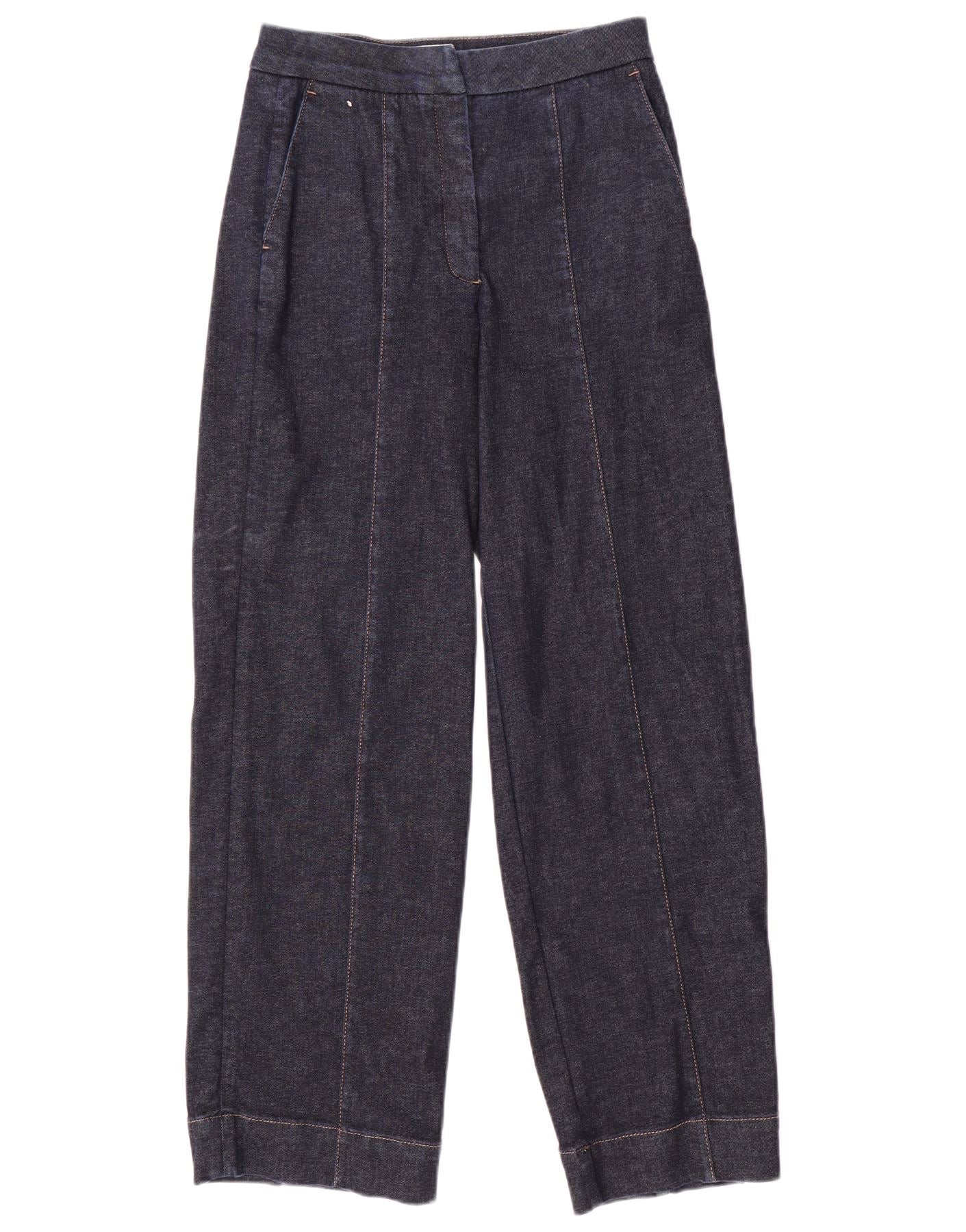 Jaeger Jean droit pour femme UK 10 Small W26 L29 Bleu marine Coton