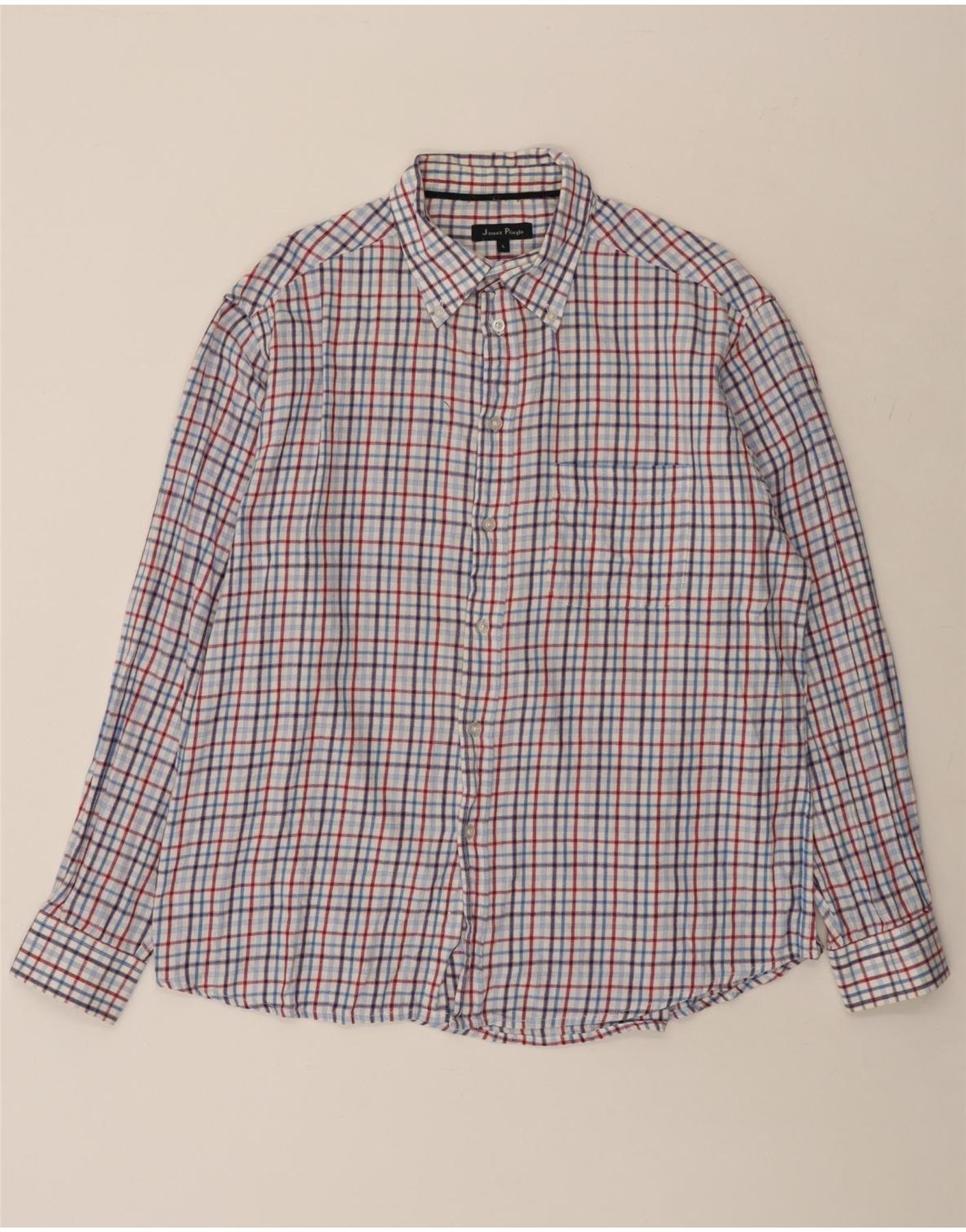 JAMES PRINGLE Chemise en Flanelle Homme Grand Carreau Bleu Coton