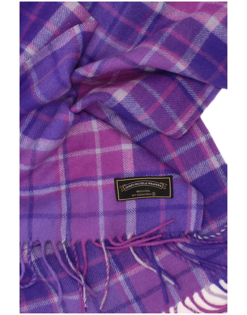 JAMES PRINGLE Womens Rectangle Scarf One Size Purple Plaid Wool Classic