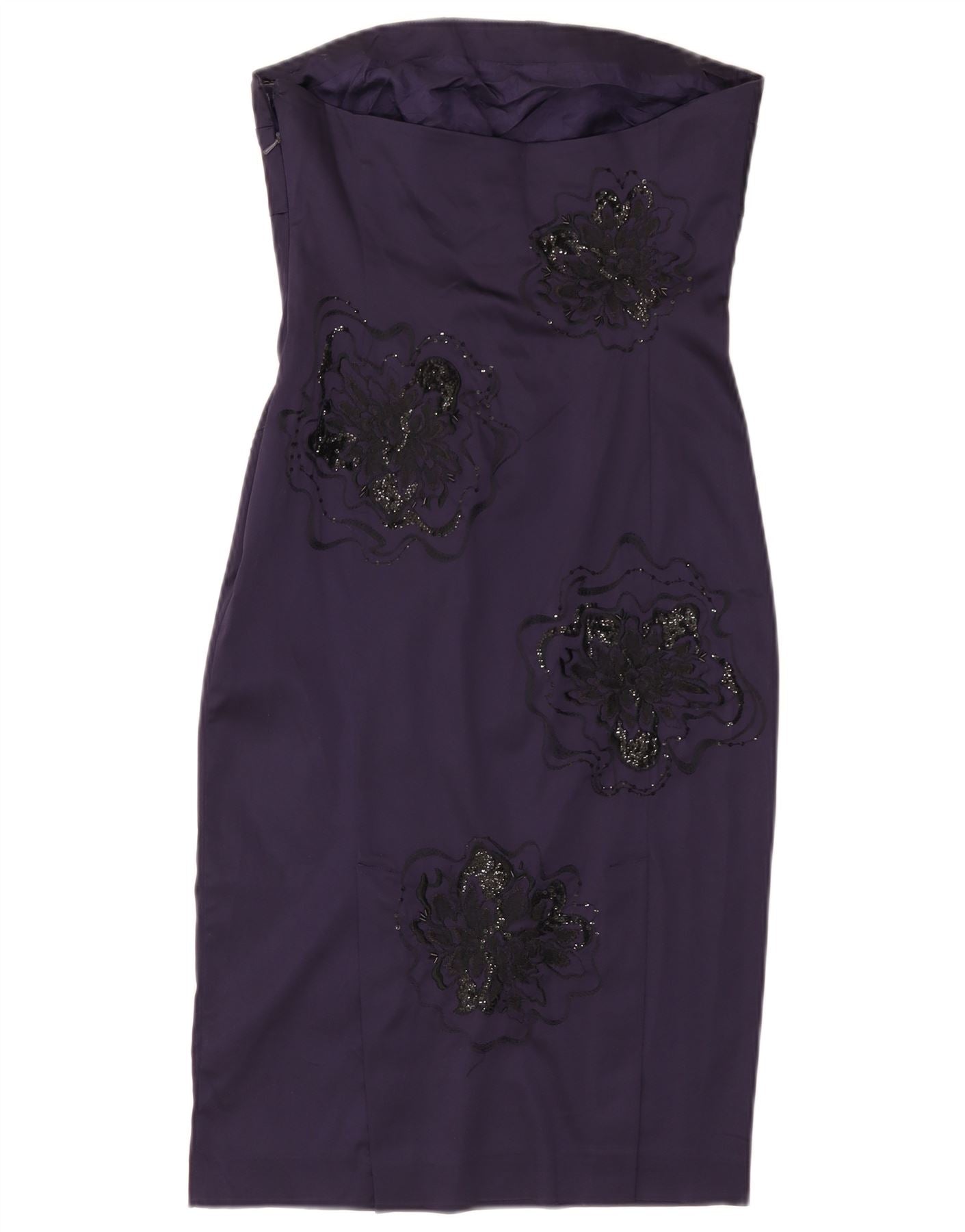 JANE NORMAN Robe moulante sans bretelles pour femme UK 12 Medium Violet Floral