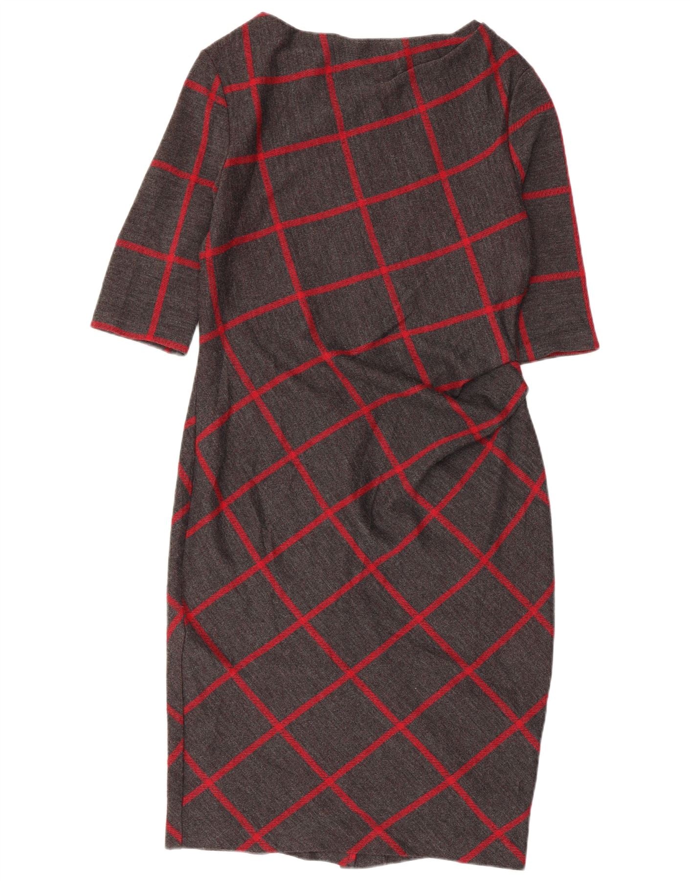 JASPER CONRAN Robe fourreau à manches 3/4 pour femme UK 14 Gris moyen à carreaux
