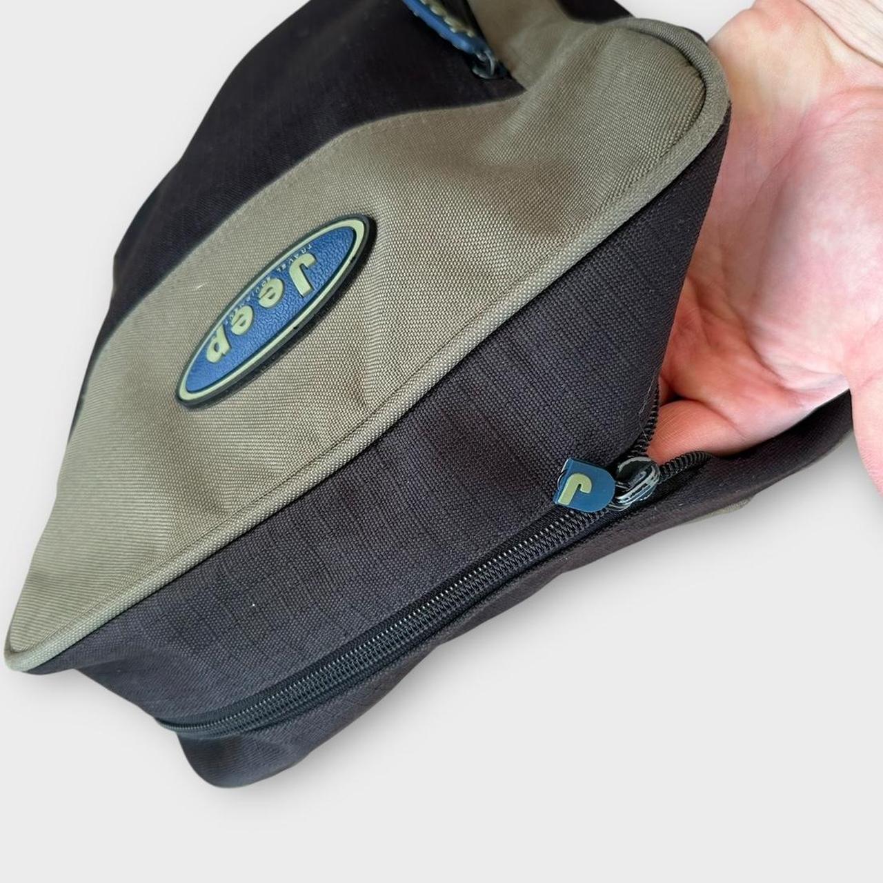 Sac à bandoulière Jeep Y2K du début des années 2000 en vert et noir avec des détails de logo partout