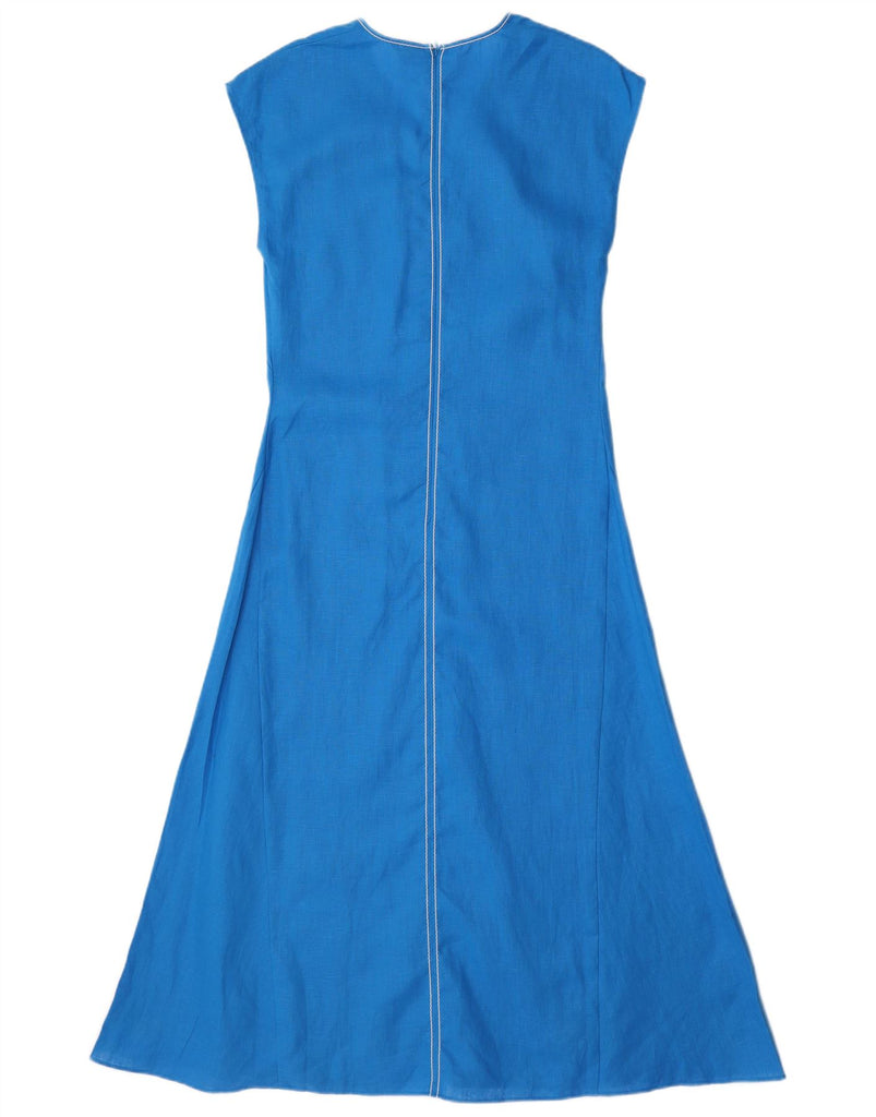 - AI Description: This Jigsaw womens A-line dress is crafted from 100% woven linen, offering a breathable and natural texture in a sophisticated blue hue. It features a flattering V-neckline and a sleeveless design for a light feel. The relaxed A-line silhouette drapes gracefully, ensuring comfort and style. A discreet zip closure provides a seamless finish. This classic piece is perfect for warm weather.