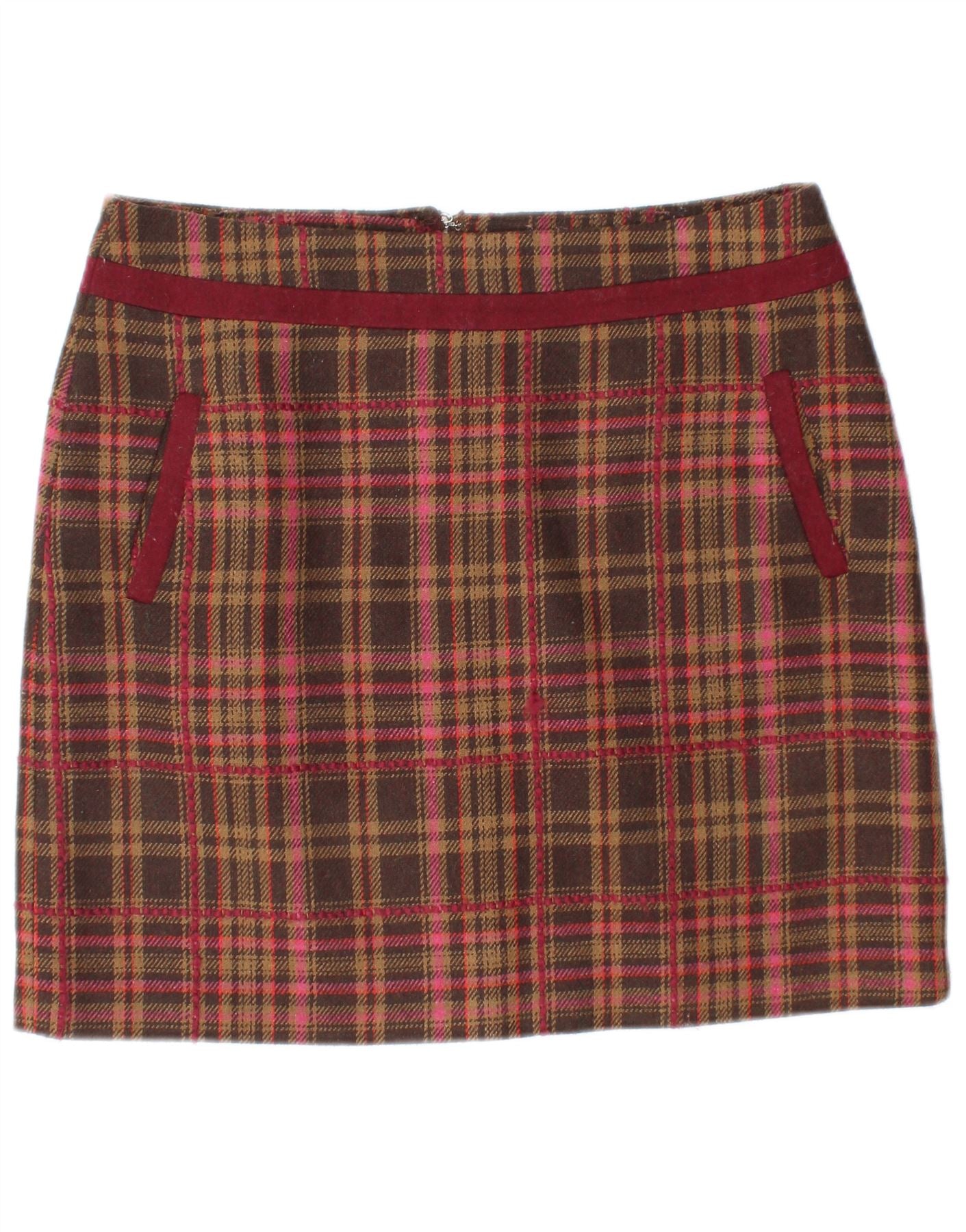JOE BROWNS Mini jupe femme UK 12 Medium W32 marron à carreaux acrylique