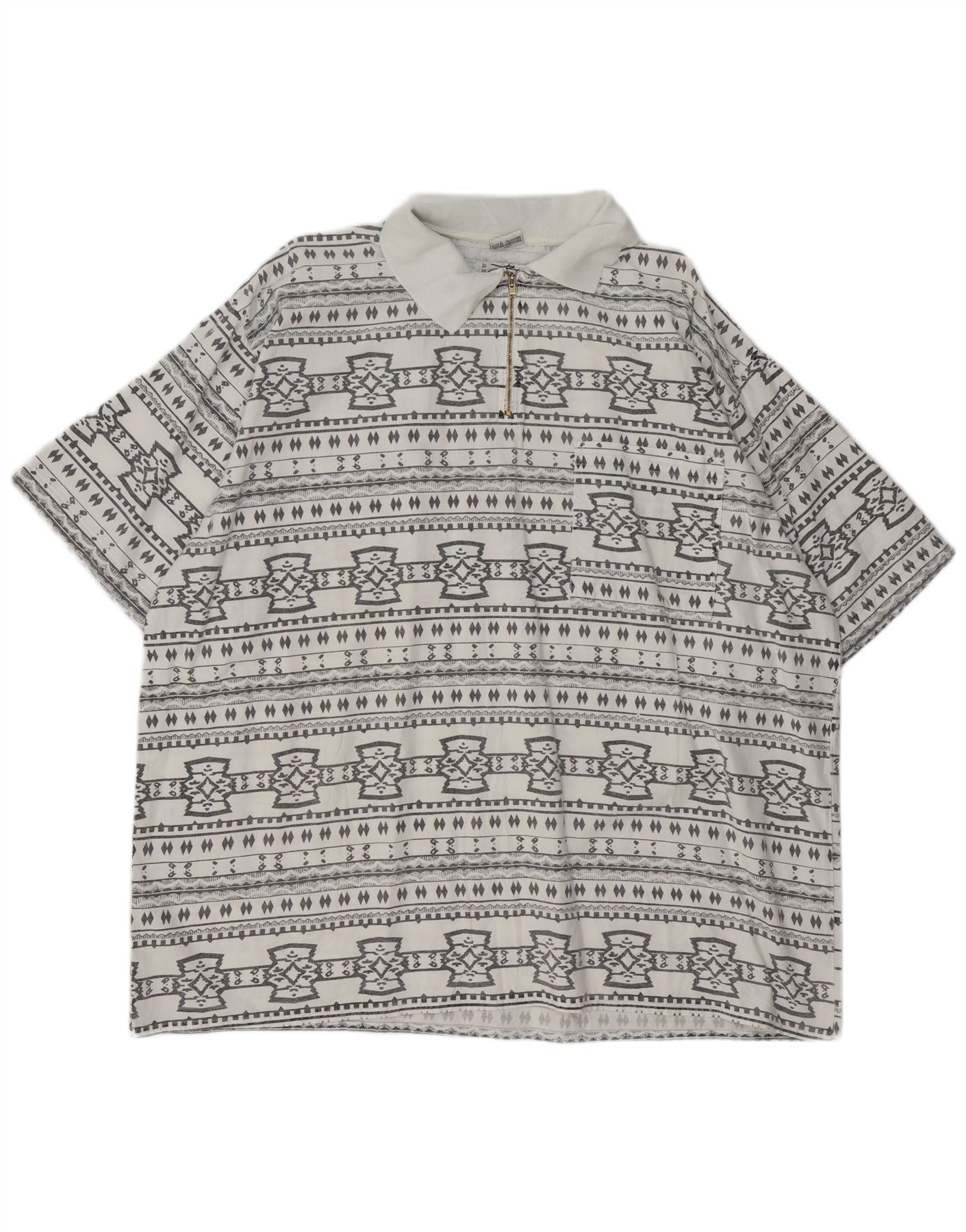 JOHN F GEE Chemise pull à manches courtes pour hommes 2XL coton géométrique blanc