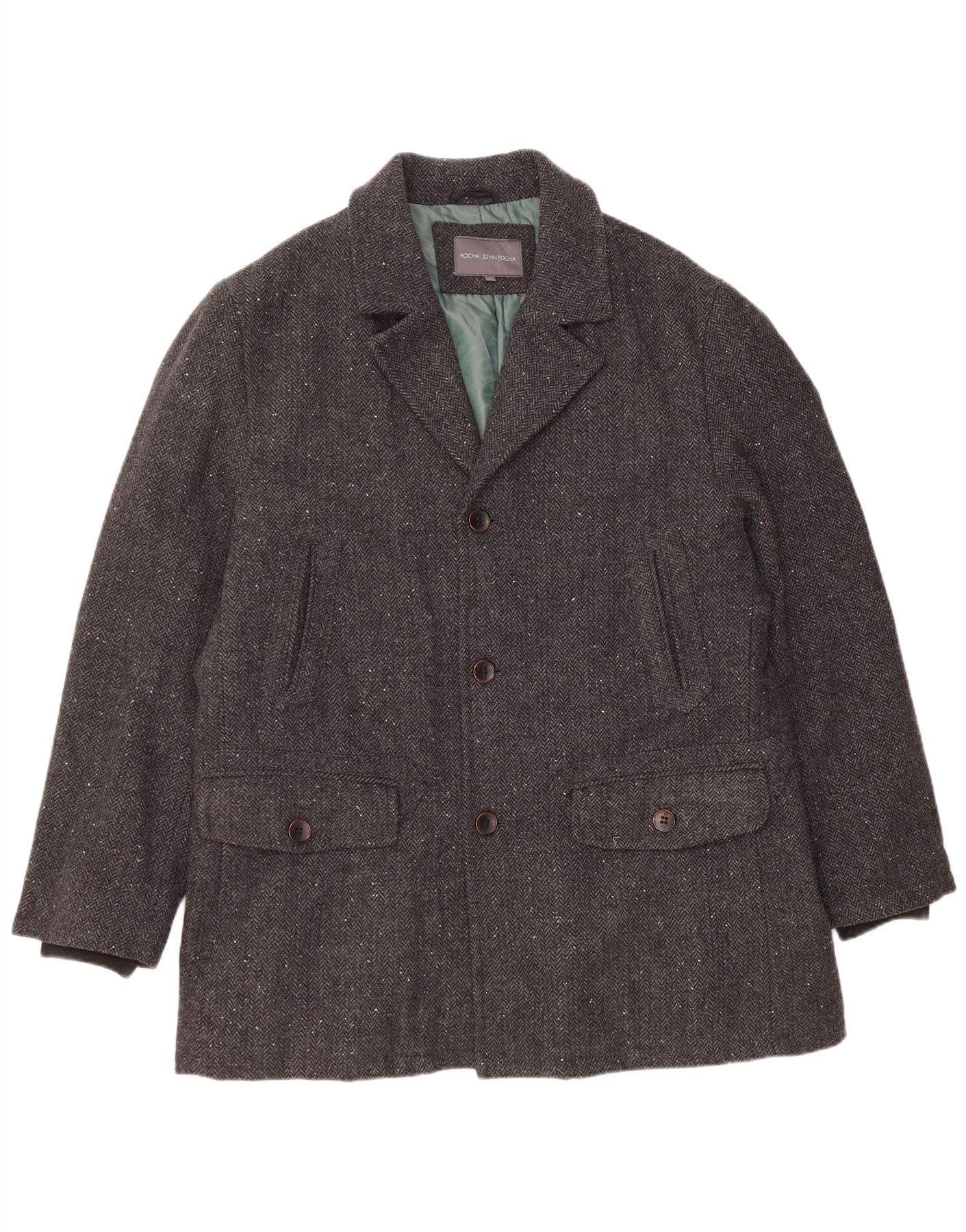 JOHN ROCHA Manteau Homme UK 42 XL Laine à Chevrons Gris