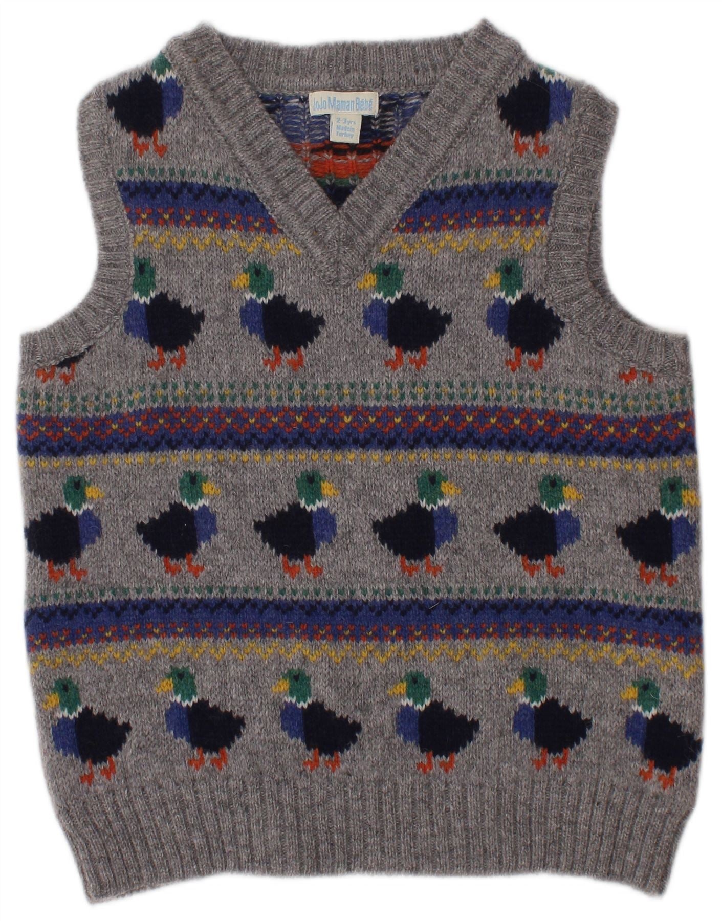 JOJO MAMAN BEBE Débardeur Garçon 2-3 Ans Gris Fair Isle Laine d'Agneau