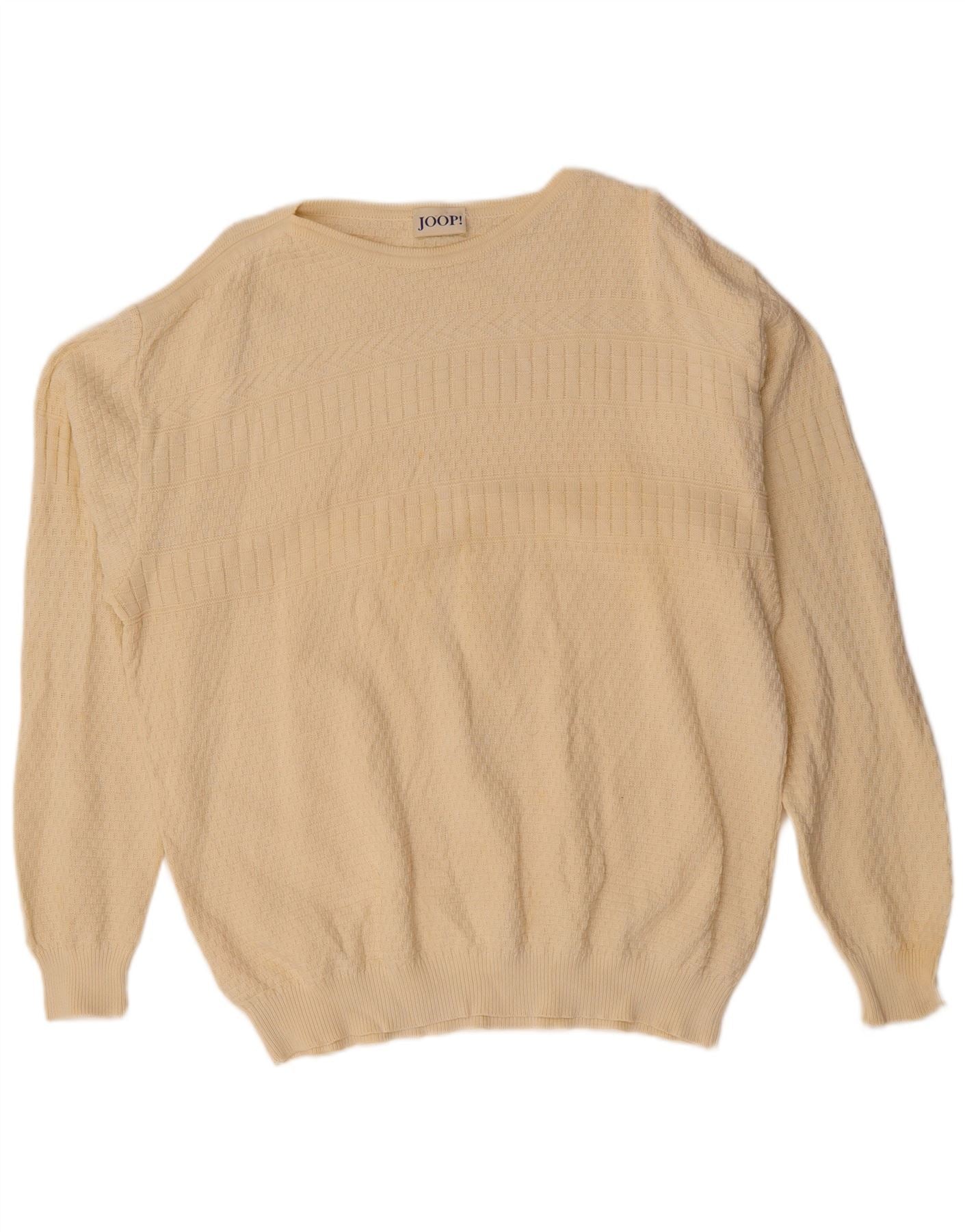 - AI Description: This Joop men's Crew Neck Jumper Sweater is crafted from luxurious 100 percent lambswool, offering a soft, fine knit texture. The classic round neck and long sleeves provide a timeless silhouette. Its pullover design ensures effortless wear. A regular fit offers comfortable, everyday appeal. The off-white colour maintains a clean, versatile aesthetic. This piece is perfect for refined layering.