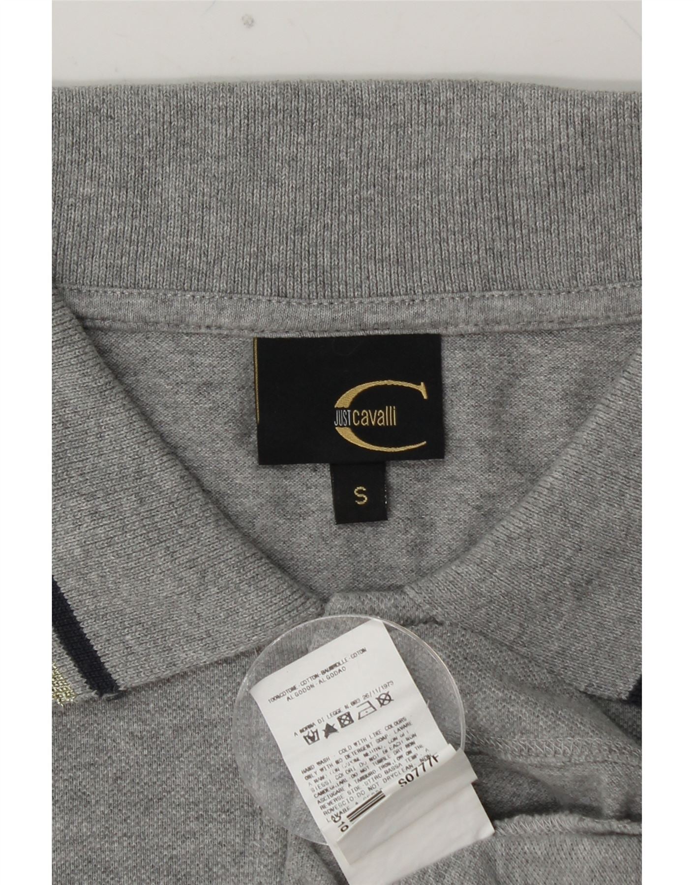 JUST CAVALLI Polo graphique à manches longues pour femme UK 10 petit coton gris