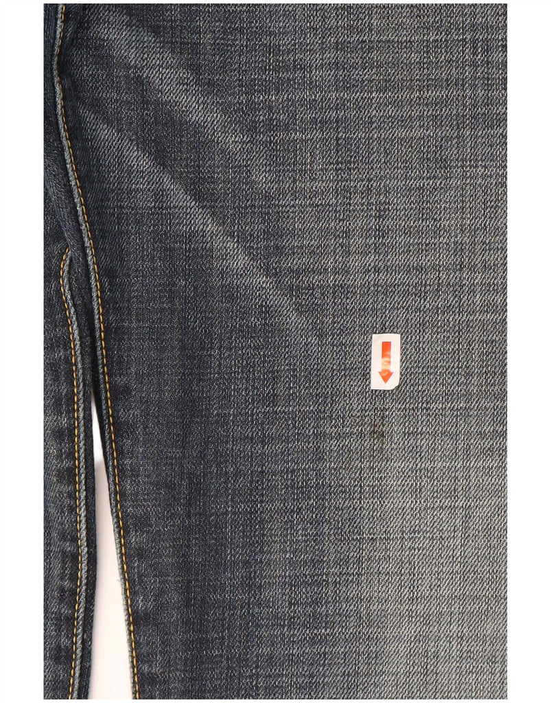- AI Description: These Kangol mens straight jeans are crafted from blue cotton denim. The fabric features a distressed finish for a worn-in look. They offer a regular fit through the leg. A button closure secures the waist. Classic pockets provide practicality. A subtle logo accent adds brand recognition. These jeans combine comfort with a contemporary, casual style.
