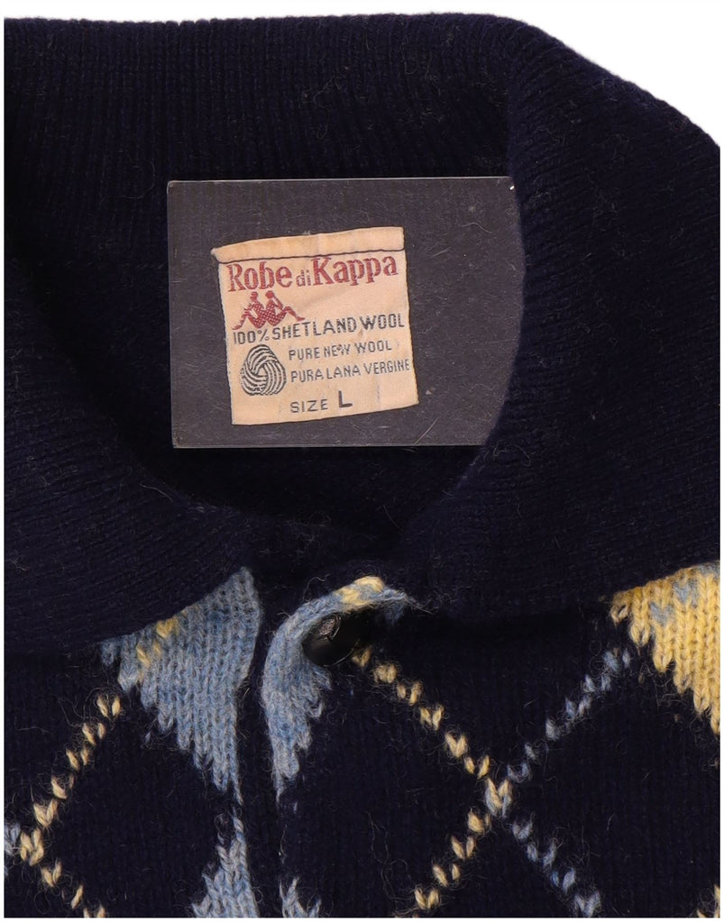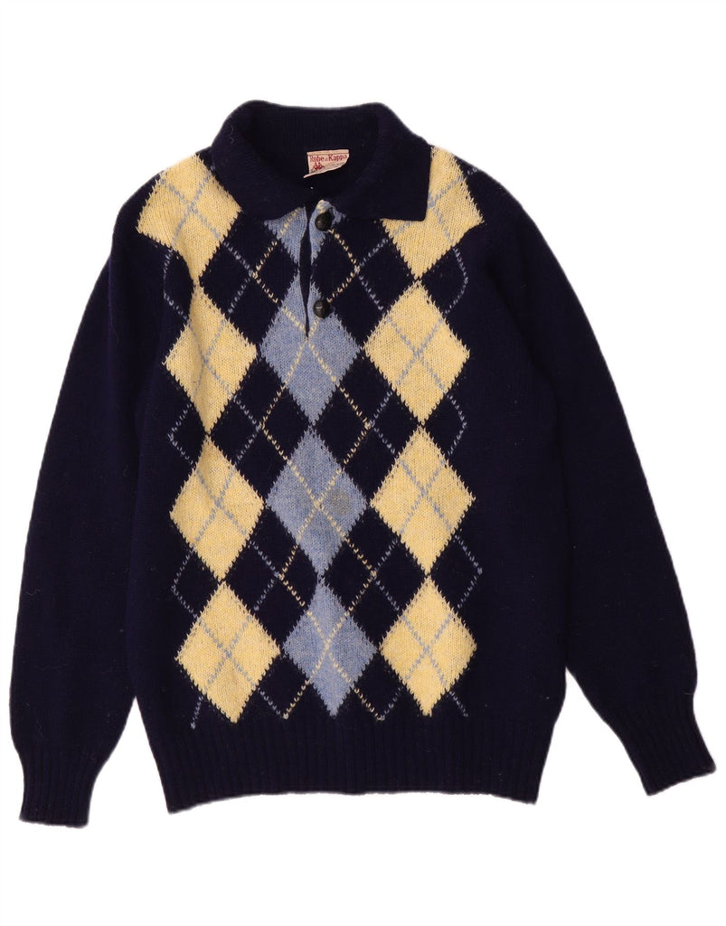 KAPPA Pull col polo pour homme en laine bleu marine à losanges et diamants