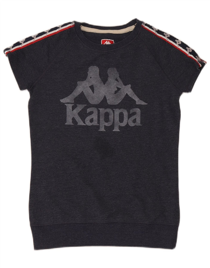 KAPPA T-shirt graphique pour femme UK 10 Petit coton moucheté bleu marine