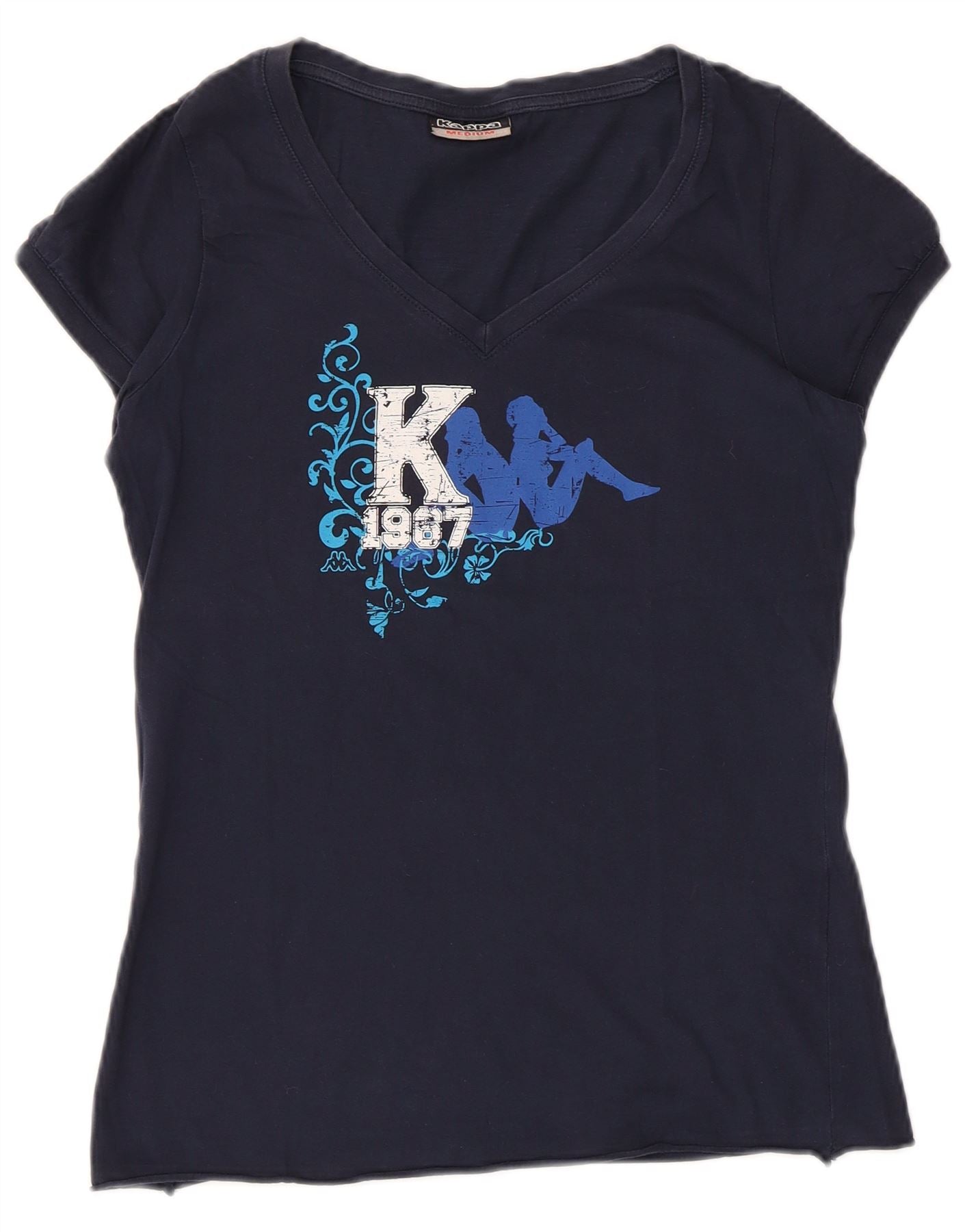 Home > aux femmes > Vêtements Dépop > KAPPA T-shirt graphique pour femme UK 12 Bleu marine moyen Coton