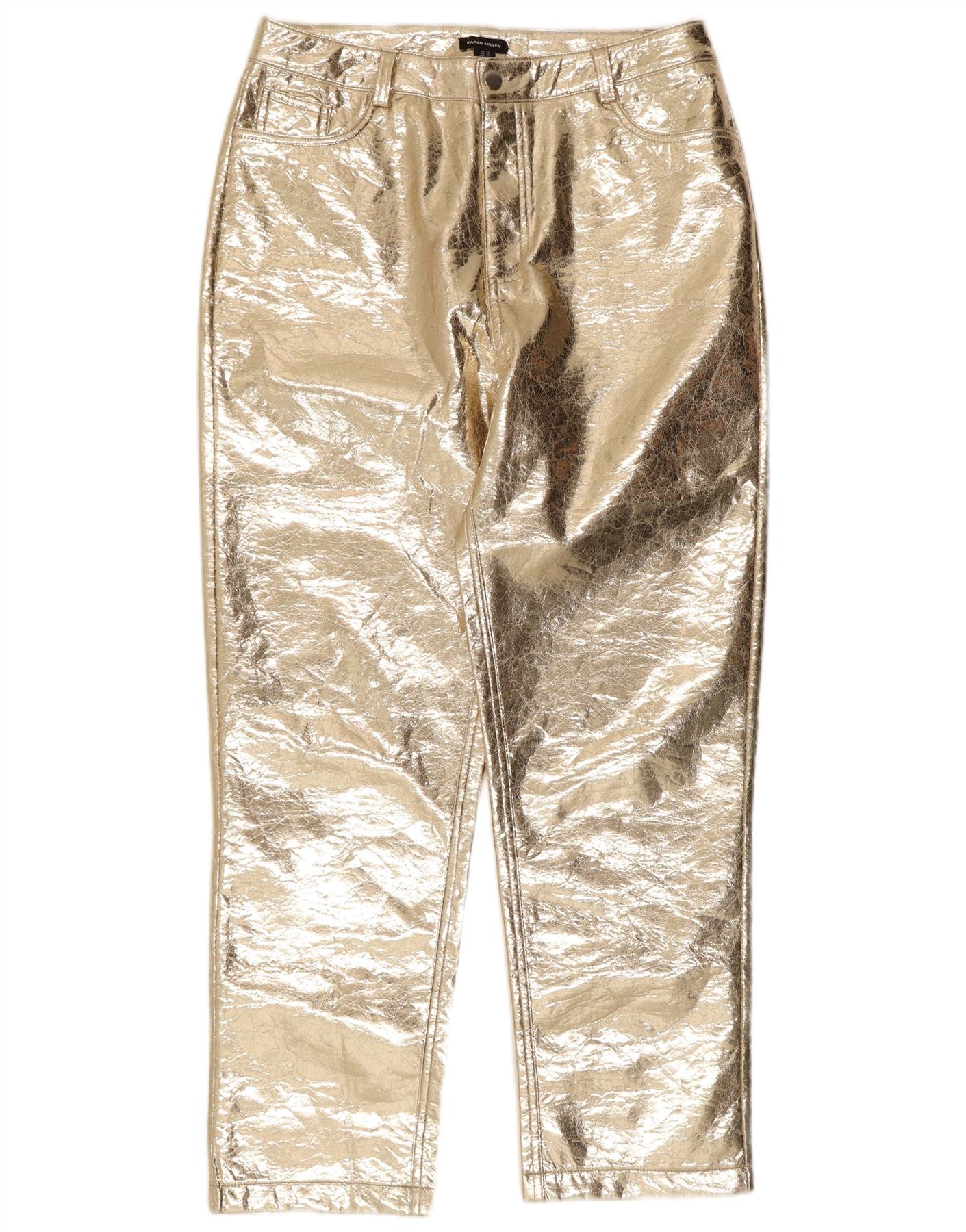KAREN MILLEN Womens Faux Leather Trousers UK 14 Large W32 L28 Gold
