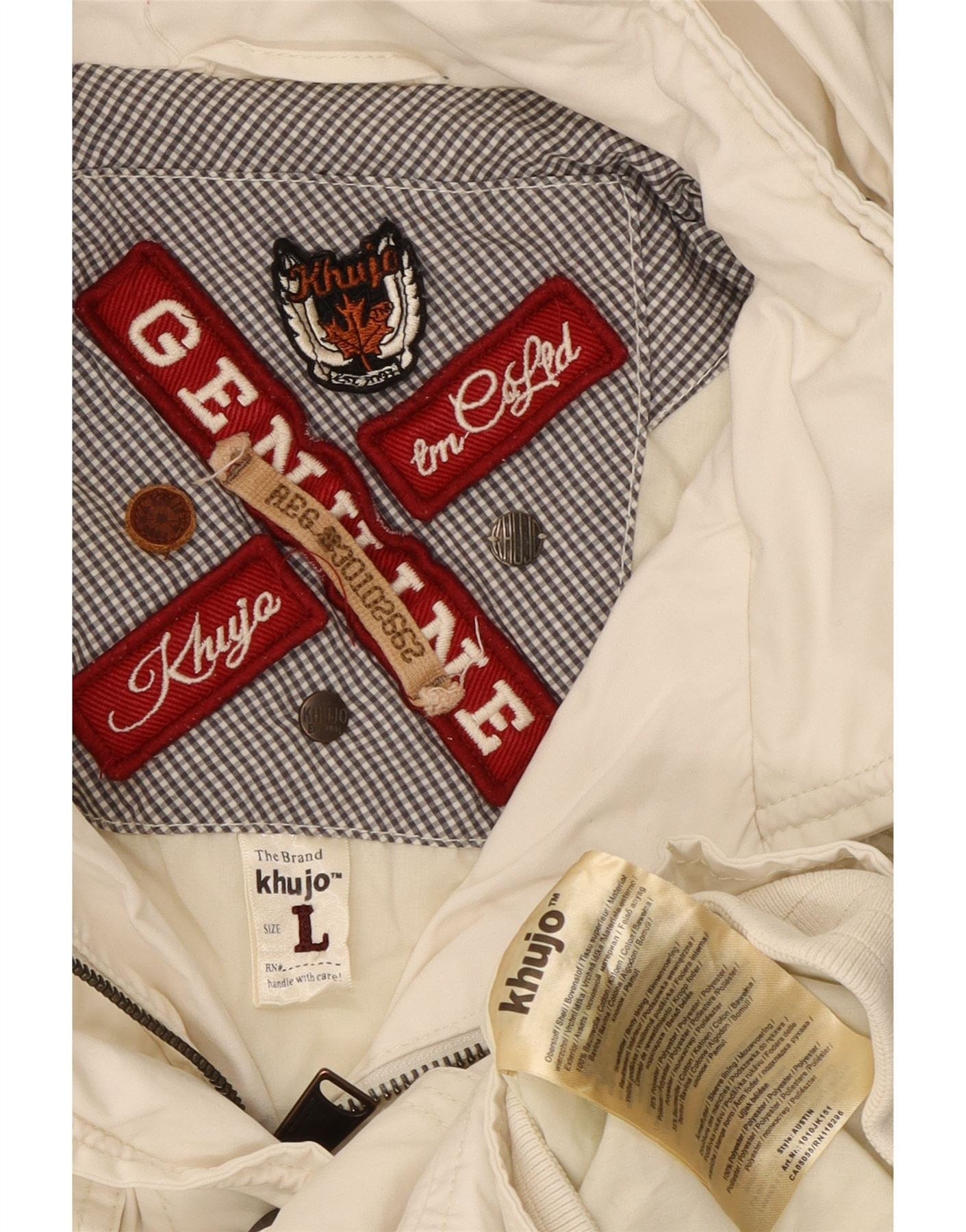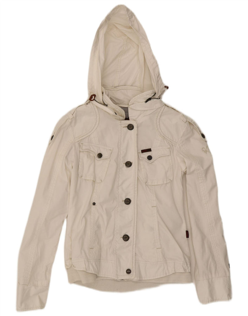 KHUJO Womens Graphic Hooded Military Jacket UK 14 Large Off White Cotton