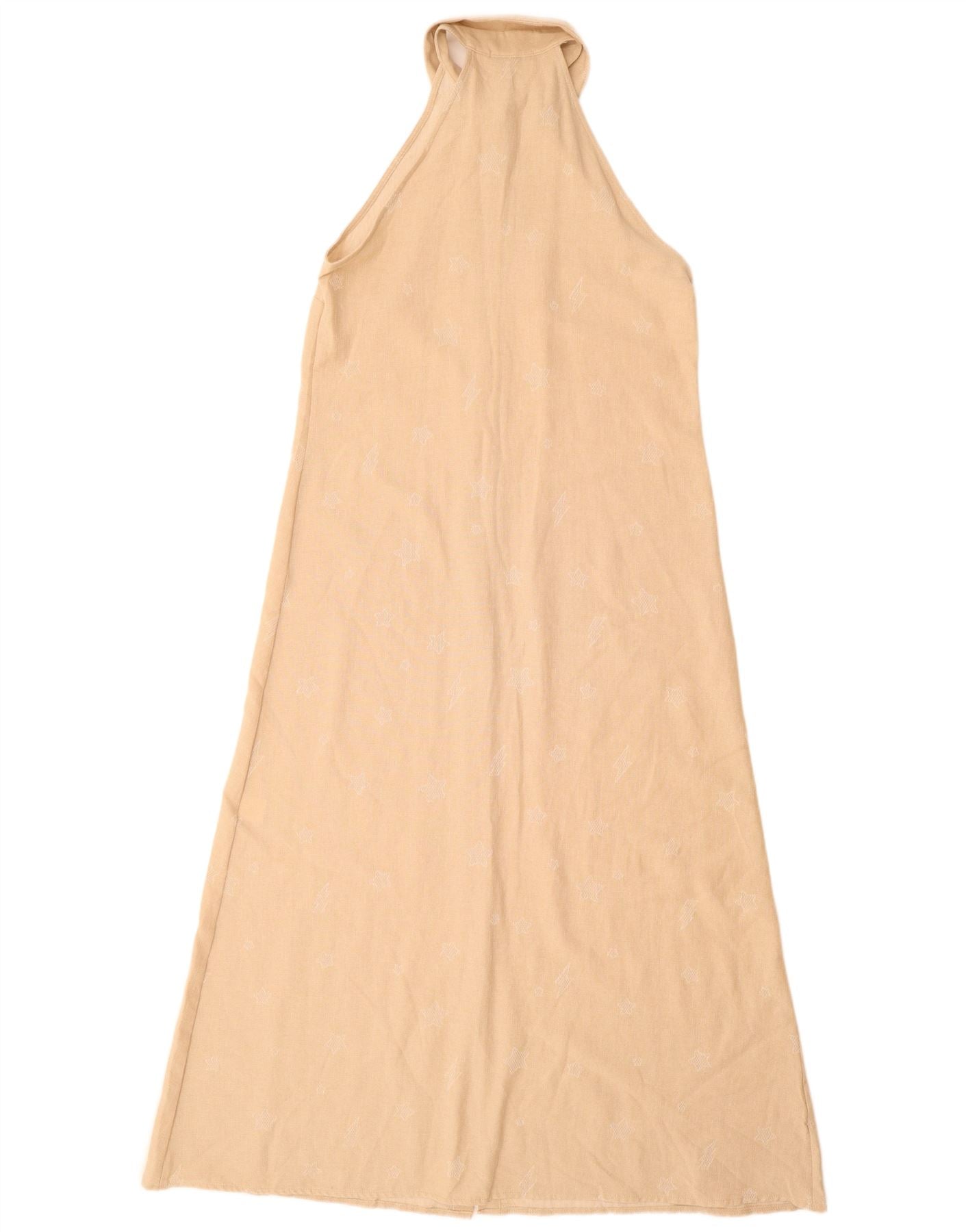 KIKISIX Robe longue sans manches à motif abstrait pour femme UK 44 Beige moyen