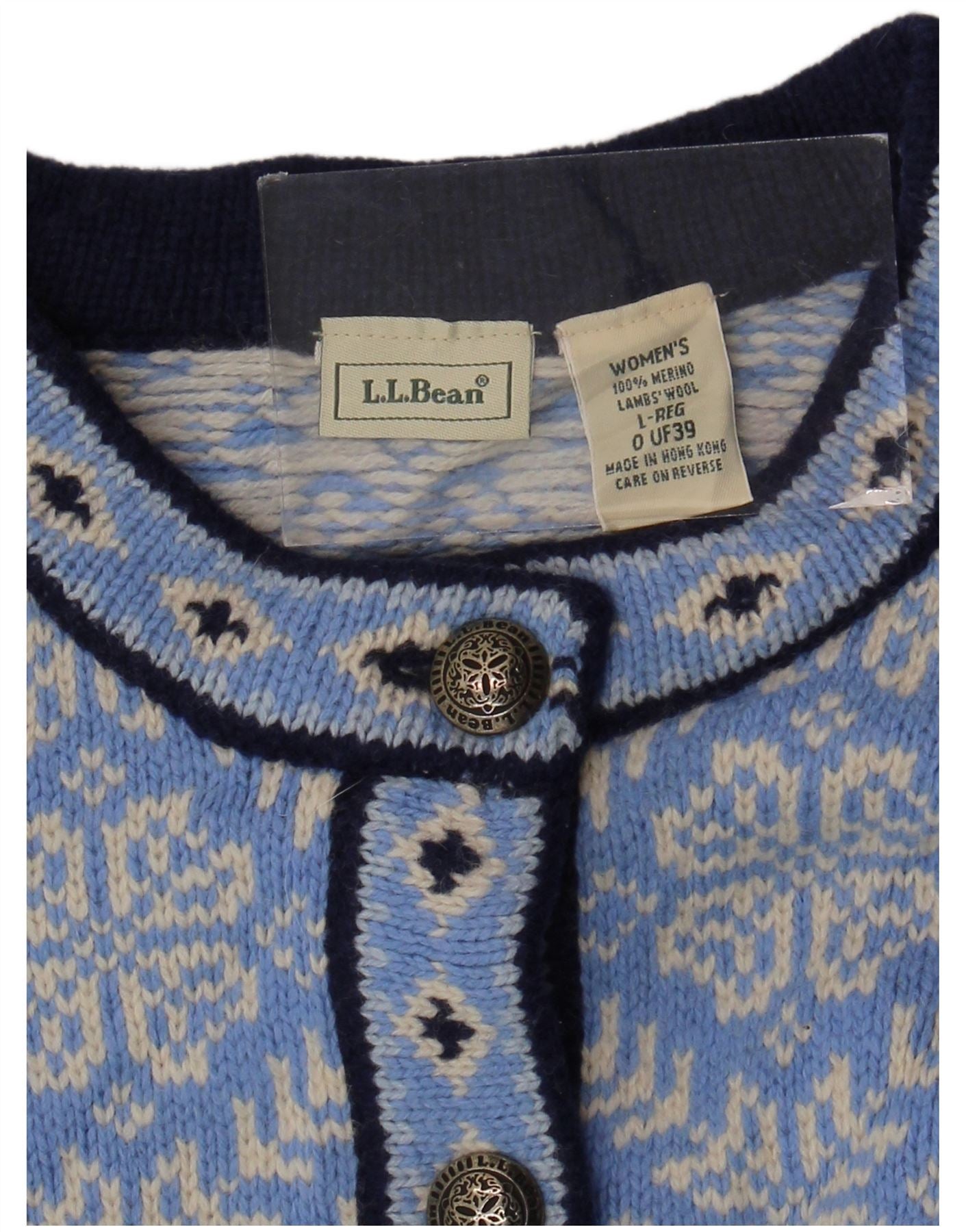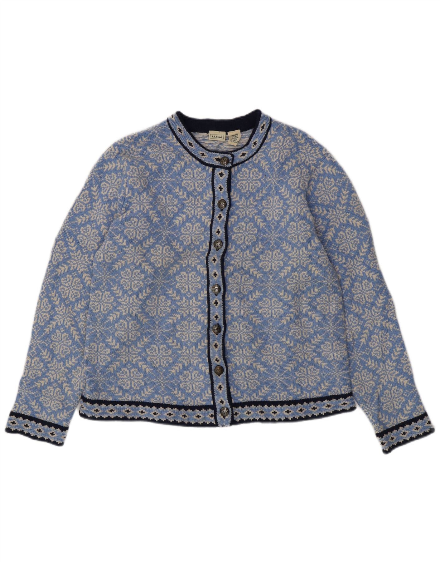 L.L.BEAN Pull Cardigan Femme UK 16 Grand Bleu Fair Isle Laine Mérinos