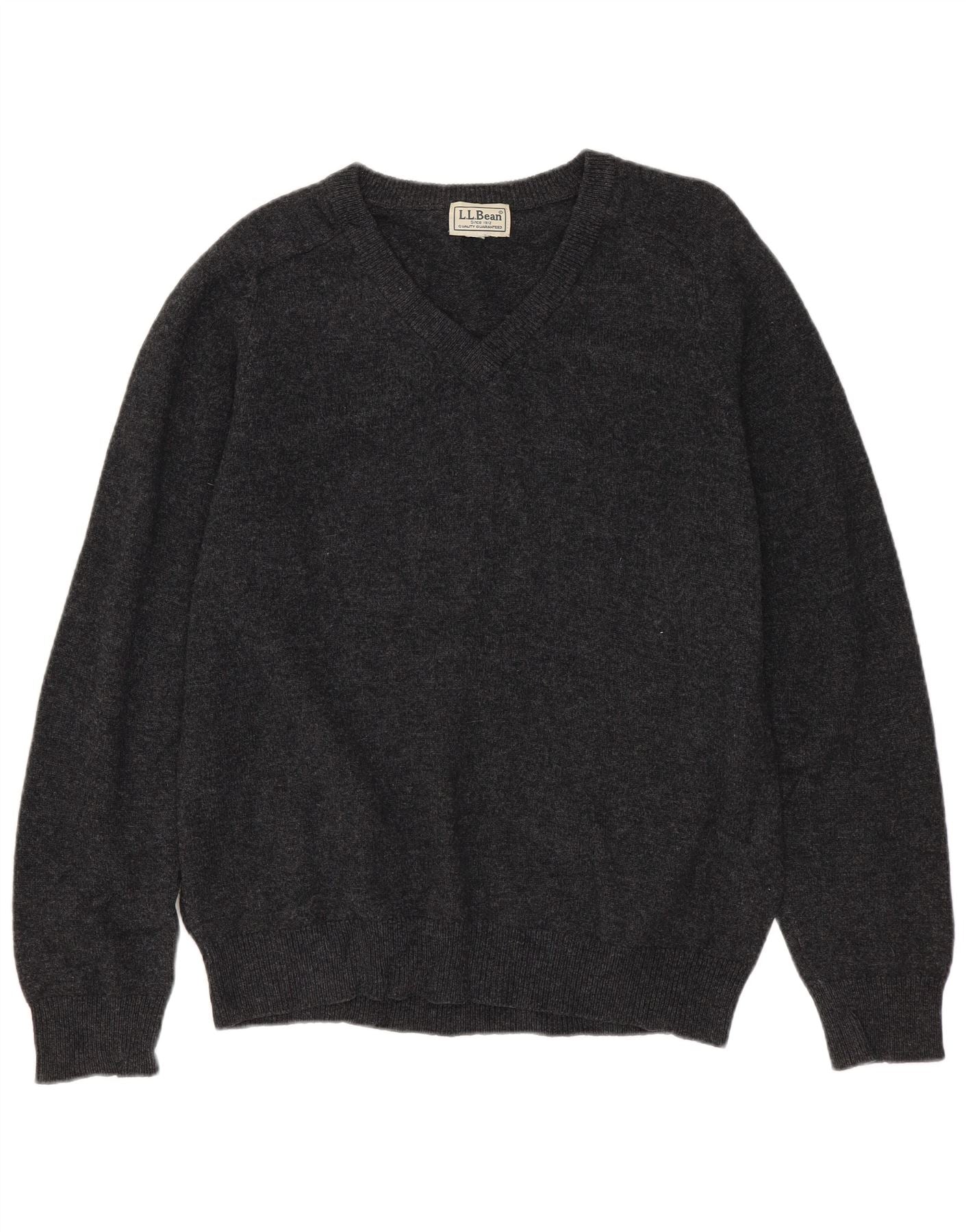 L.L.BEAN Pull col en V pour femme UK 16 Grande laine grise